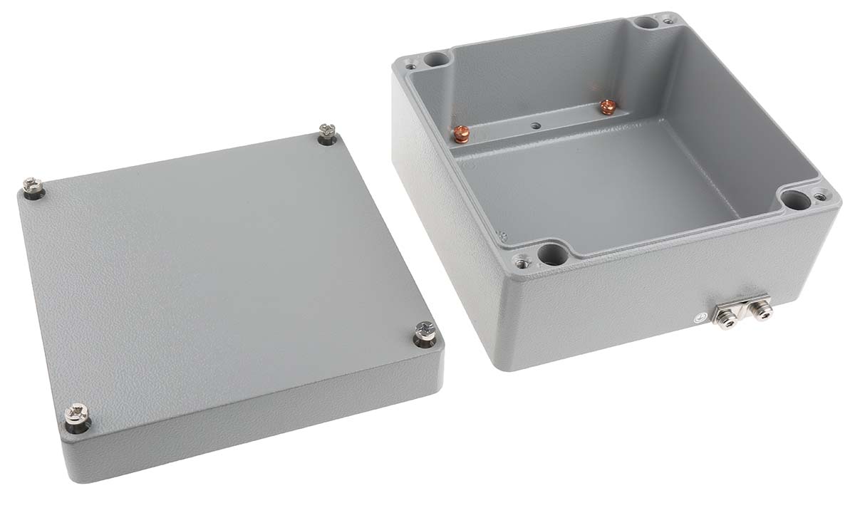 This is Aluminium Enclosure IP66 IP67 IP68 180 x 180 x 100mm ATEX IECEx manufactured by RS PRO. The manufacturer part number is 190-1874. The product's body is nicely designed from aluminium materials.