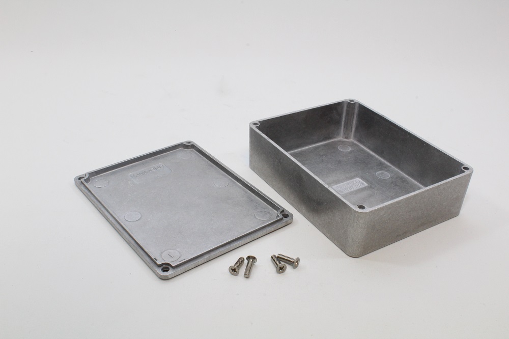This is 1590 Die Cast Aluminium Alloy Enclosure IP54 Shielded 119 x 94 x 38mm manufactured by Hammond. The manufacturer part number is 1590BB2. The product 1590, is a highly preferred choice for users. The product's body is nicely designed from die cast aluminium alloy materials.