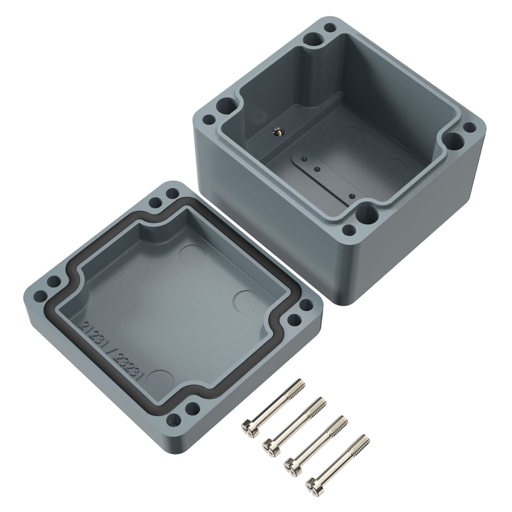 This is Polyester Standard Series Silver Glass Reinforced Polyester Enclosure IP66 Grey Lid 80 x 75 x 56.5mm manufactured by Rose. The manufacturer part number is 020808060. The typical product's weight is 230g. The product polyester standard, is a highly preferred choice for users. The product's body is nicely designed from glass reinforced polyester materials.