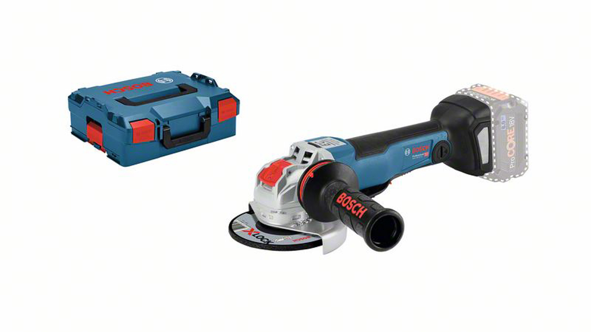 This is GWX 18 V-10 PC bare X Lock Angle Grinder manufactured by Bosch. The manufacturer part number is 06017B0700. The typical product's weight is 2kg. Moreover, the product has a nominal 18v voltage rating.