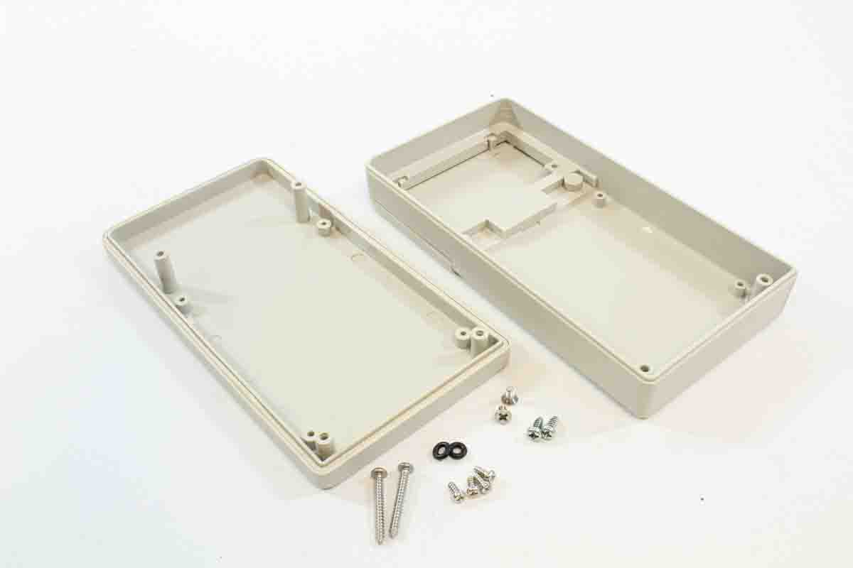This is ABS Hand Held Enclosure With Integral Battery Compartment IP65 160 mm x 30 mm x 84 mm manufactured by RS PRO. The manufacturer part number is 198-1366. The product's body is nicely designed from abs materials.