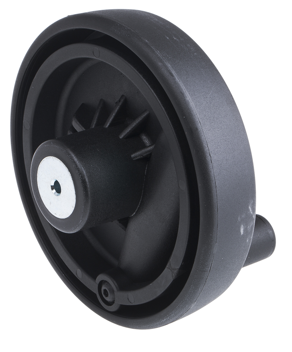 This is Black Nylon Hand Wheel 125mm manufactured by RS Pro. The manufacturer part number is 702-7847. The given diameter of mounting hole is 5mm. While it is also supplied with highly stable steel insert material.