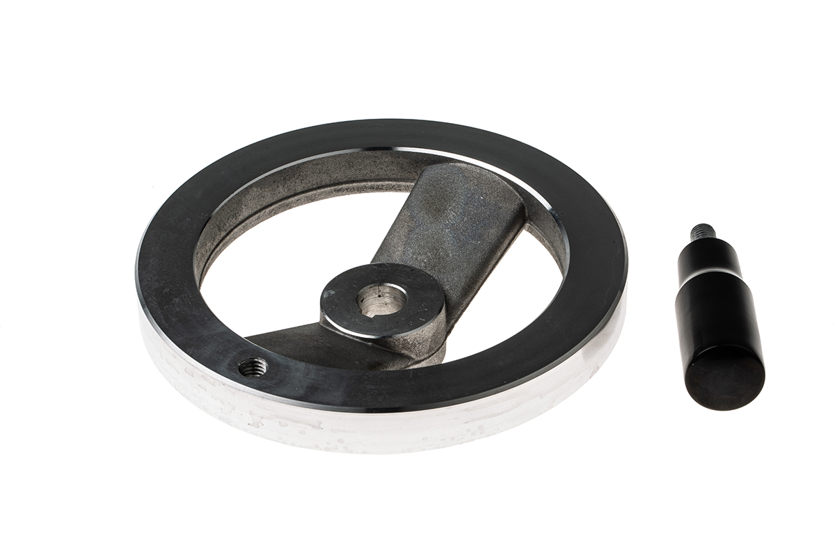 This is Die Cast Aluminium Hand Wheel 140mm manufactured by RS Pro. The manufacturer part number is 237-536. The given diameter of mounting hole is 14mm. While it is also supplied with highly stable aluminium insert material.