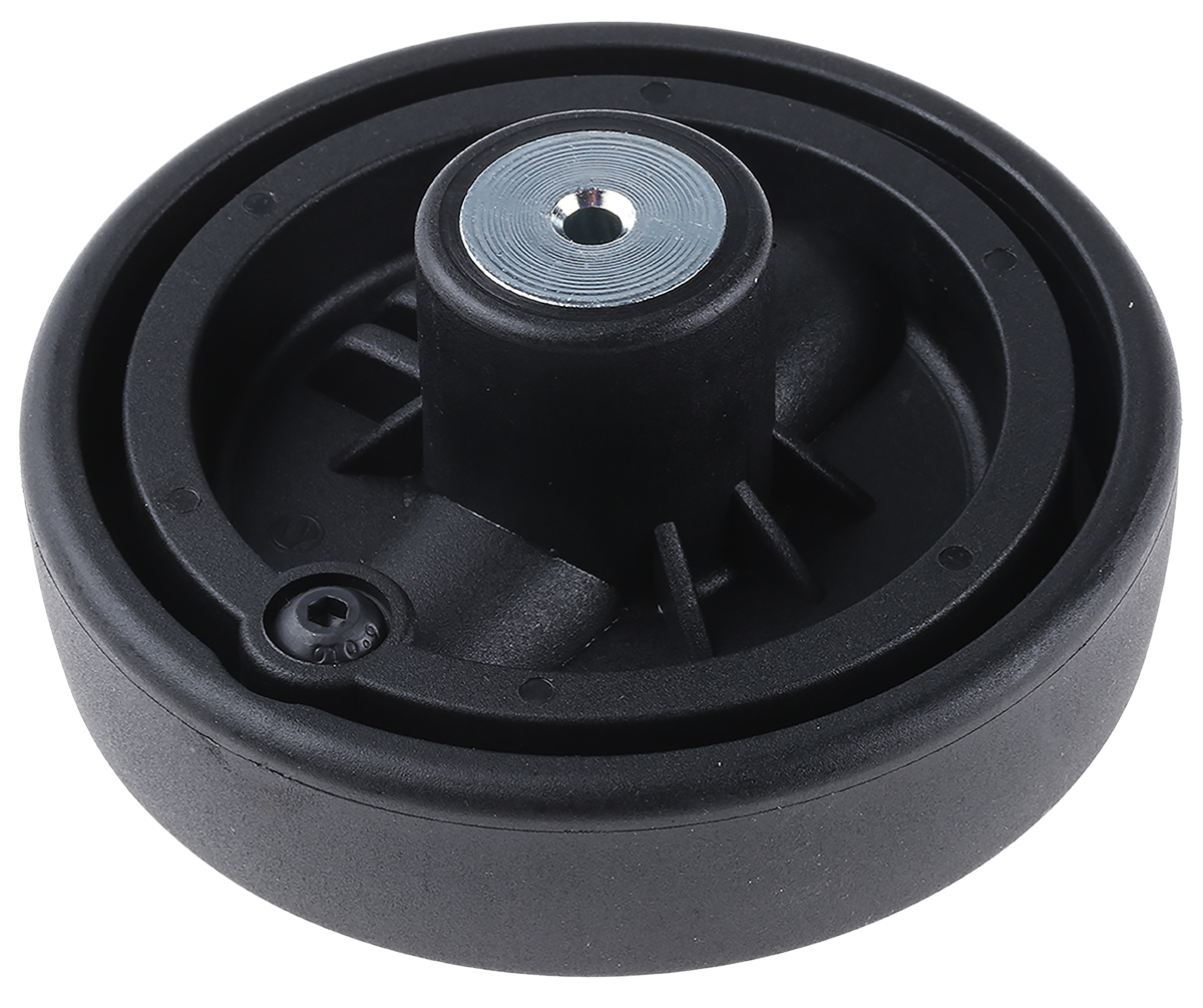 This is Black Nylon Hand Wheel 100mm manufactured by RS Pro. The manufacturer part number is 702-7866. The given diameter of mounting hole is 5mm. While it is also supplied with highly stable steel insert material.