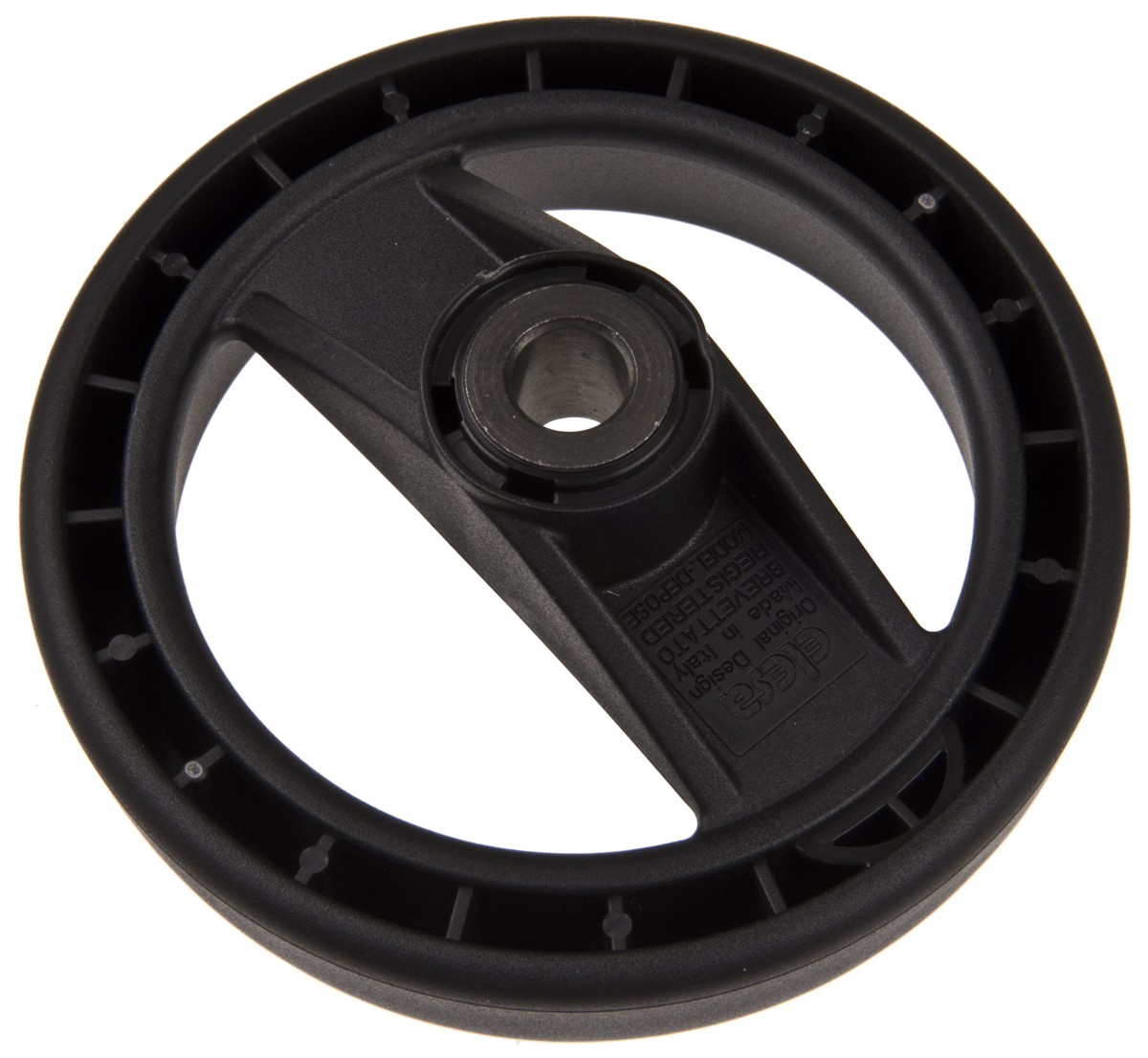 This is Black Technopolymer Hand Wheel 99mm manufactured by Elesa. The manufacturer part number is 78511. The given diameter of mounting hole is 10mm. While it is also supplied with highly stable steel insert material.