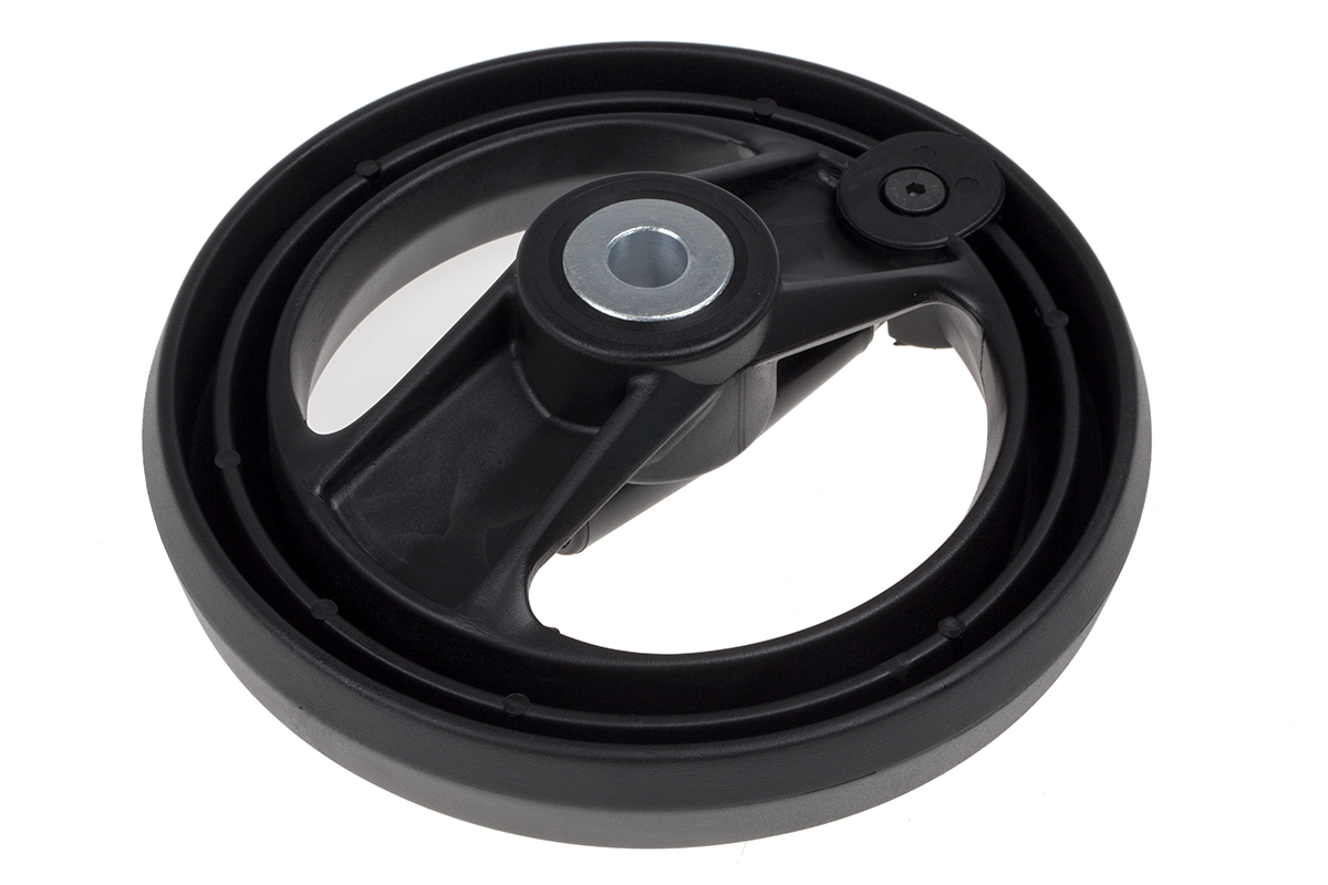 This is Black Glass-Fibre Reinforced Technopolymer Hand Wheel 160mm manufactured by RS Pro. The manufacturer part number is 161-2011. The given diameter of mounting hole is 12mm. While it is also supplied with highly stable steel insert material.