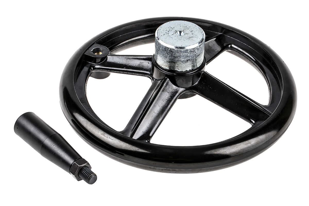 This is Black Phenoplast Vegetal Fibre Reinforced Hand Wheel 250mm manufactured by RS Pro. The manufacturer part number is 161-2031. The given diameter of mounting hole is 50mm. While it is also supplied with highly stable steel insert material.