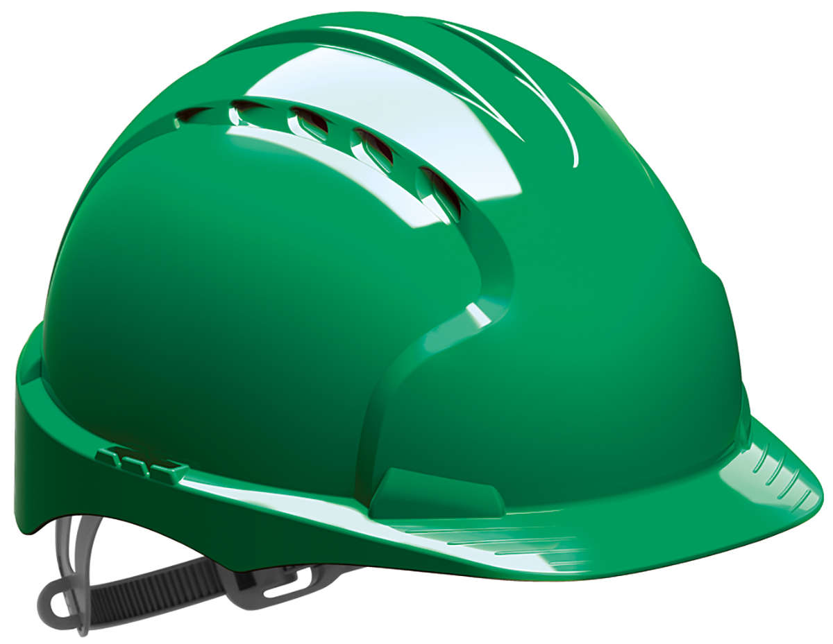 This is Green Vented HDPE Hard Hat manufactured by JSP. The manufacturer part number is AJF160-000-300. The product is made from highly stable and reliable hdpe.
