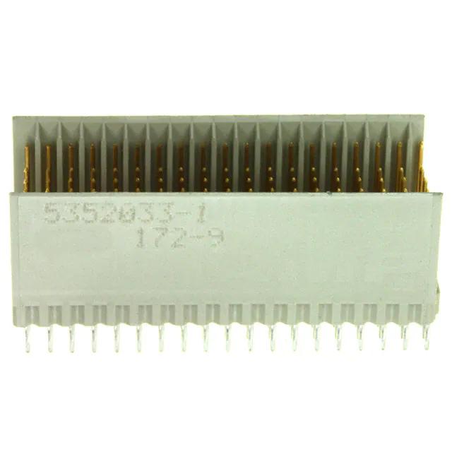 This is manufactured by TE Connectivity AMP Connectors. The manufacturer part number is 5352033-1. It is assigned with possible HTSUS value of 8536.69.4040. The product is rohs compliant. The product has -55°c ~ 125°c operating temperature range. It comes in b 19 connector style. It has 30.0µin (0.76µm) of contact finishing thickness. The product carries possible position value of 133 (95 + 38 ground). Moreover, the product has a nominal 500vrms voltage rating. In addition, it is vendor undefined. It comes in 5 + 2 of rows. It is shipped in tube. header, male pins Connector type offer robust functionality. Furthermore, the product is galvanized with excellent gold contact finishing. Its typical moisture sensitivity level is 1 (unlimited). The product features press-fit termination style. Additionally, the product's output is 1.5 a The product is available in through hole configuration. The product z-pack, is a highly preferred choice for users. Moreover, the product is 0.079" (2.00mm) However, all is the Number of Positions Loaded. Moreover, it corresponds to 5352033, a base product number of the product. The product is designated with the ear99 code number