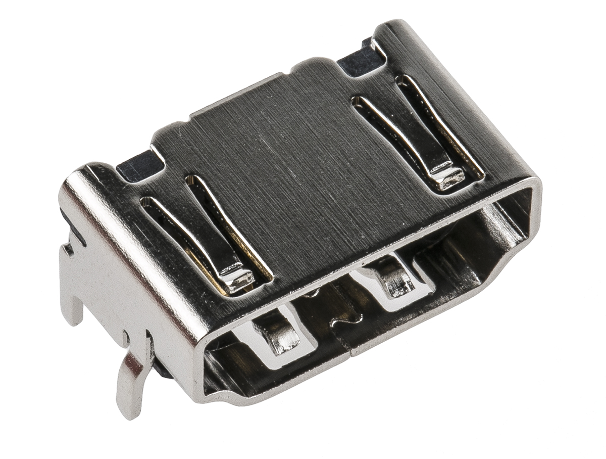This is Amphenol FCI 19 Way Right Angle Feedthrough HDMI Connector 40 V ac manufactured by Amphenol ICC. The manufacturer part number is 10029449-001RLF. The product has a current rating of 500ma. Moreover, the product has a nominal 40 v ac voltage rating. The product contains 19 contacts. The product is made from sturdy brass materials.