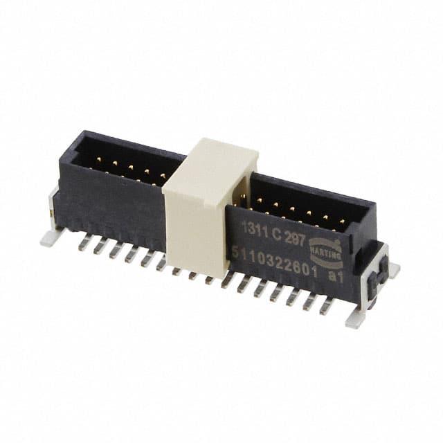 This is manufactured by HARTING. The manufacturer part number is 15110322601000. It has nice contact finishing of gold. Additionally, the product is designed with board to board or cable Style. It has possible tin contact post finishing. It is assigned with possible HTSUS value of 8536.69.4040. The product is rohs3 compliant. The product has -55°c ~ 125°c operating temperature range. The product carries possible position value of 32. 0.260" (6.60mm) of insulation height. In addition, it is reach unaffected. Furthermore, a bespoke product features shrouded - 4 wall. It comes in 2 of rows. It carries ul94 v-0 of material flammability rating. In addition, black is the insulation color of the product. It has a typical square shape. It is shipped in tape & reel (tr). It carries 0.050" (1.27mm) of row spacing. header Connector type offer robust functionality. It is 0.157" (4.00mm) contact mated. However, all is the Number of Positions Loaded. Its typical moisture sensitivity level is 1 (unlimited). Furthermore, push-pull is the Fastening Type of the product. The product features solder termination style. It has a long 14 weeks standard lead time. It has 0.050" (1.27mm) of pitch-mating value. The splendid features of the product include board guide, pick and place, solder retention. The product is available in surface mount configuration. The product har-flex®, is a highly preferred choice for users. It has typical contact type of male pin. The product is made from sturdy copper alloy materials. It has a robust liquid crystal polymer (lcp) insulation material. The product is designated with the ear99 code number