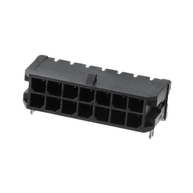This is manufactured by Molex. The manufacturer part number is 0430451406. It has nice contact finishing of tin. Additionally, the product is designed with board to cable/wire Style. It has possible tin contact post finishing. It is assigned with possible HTSUS value of 8536.69.4040. The product is rohs3 compliant. The product has -40°c ~ 105°c operating temperature range. The product carries possible position value of 14. 0.290" (7.37mm) of insulation height. Moreover, the product has a nominal 600v voltage rating. In addition, it is reach unaffected. Furthermore, a bespoke product features shrouded - 4 wall. The product is widely employed in automotive, general purpose, industrial, medical, telecommunications. It comes in 2 of rows. It carries ul94 v-0 of material flammability rating. In addition, black is the insulation color of the product. It has a typical square shape. It has a robust liquid crystal polymer (lcp), glass filled insulation material. It is shipped in tape & reel (tr). It carries 0.118" (3.00mm) of row spacing. header Connector type offer robust functionality. However, all is the Number of Positions Loaded. Its typical moisture sensitivity level is 1 (unlimited). However, 60.0µin (1.52µm) is the "Contact Finish Thickness - Mating" of the product. Furthermore, locking ramp is the Fastening Type of the product. The product features solder termination style. It has a long 11 weeks standard lead time. Additionally, the product's output is 8a It has 0.118" (3.00mm) of pitch-mating value. The splendid features of the product include board lock. The product is available in surface mount, right angle configuration. The product micro-fit 3.0 43045, is a highly preferred choice for users. It has typical contact type of male pin. The product is made from sturdy brass materials. Moreover, it corresponds to 043045, a base product number of the product. The product is designated with the ear99 code number