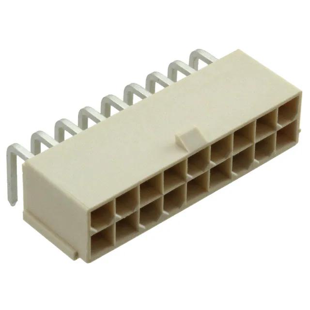 This is manufactured by Molex. The manufacturer part number is 0874271802. It has nice contact finishing of tin. Additionally, the product is designed with board to cable/wire Style. It has possible tin contact post finishing. It is assigned with possible HTSUS value of 8536.69.4040. The product is rohs3 compliant. Additionally, it features 100.0µin (2.54µm) of post thickness. The product carries possible position value of 18. 0.394" (10.00mm) of insulation height. In addition, it is reach unaffected. Furthermore, a bespoke product features shrouded - 4 wall. The product is widely employed in general purpose, industrial, telecommunications. It comes in 2 of rows. It carries ul94 v-0 of material flammability rating. In addition, beige is the insulation color of the product. It has a typical square shape. It has a robust polyamide (pa46), nylon 4/6 insulation material. It is shipped in tray. It carries 0.165" (4.20mm) of row spacing. header Connector type offer robust functionality. However, all is the Number of Positions Loaded. Its typical moisture sensitivity level is 1 (unlimited). However, 100.0µin (2.54µm) is the "Contact Finish Thickness - Mating" of the product. Furthermore, locking ramp is the Fastening Type of the product. The product features solder termination style. It has a long 20 weeks standard lead time. 0.130" (3.30mm) is the given possible contact length (post) values. It has 0.165" (4.20mm) of pitch-mating value. The product is available in through hole, right angle configuration. The product mini-fit jr 87427, is a highly preferred choice for users. It has typical contact type of male pin. The product is made from sturdy brass materials. Moreover, it corresponds to 087427, a base product number of the product. The product is designated with the ear99 code number