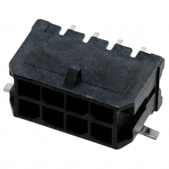 This is manufactured by Molex. The manufacturer part number is 0430450810. It has nice contact finishing of gold. Additionally, the product is designed with board to cable/wire Style. It has possible tin contact post finishing. It is assigned with possible HTSUS value of 8536.69.4040. The product is rohs3 compliant. The product has -40°c ~ 105°c operating temperature range. Additionally, it features 100.0µin (2.54µm) of post thickness. The product carries possible position value of 8. 0.290" (7.37mm) of insulation height. Moreover, the product has a nominal 600v voltage rating. In addition, it is reach unaffected. Furthermore, a bespoke product features shrouded - 4 wall. The product is widely employed in automotive, general purpose, industrial, medical, telecommunications. It comes in 2 of rows. It carries ul94 v-0 of material flammability rating. In addition, black is the insulation color of the product. It has a typical square shape. It has a robust liquid crystal polymer (lcp), glass filled insulation material. It is shipped in tape & reel (tr). It carries 0.118" (3.00mm) of row spacing. header Connector type offer robust functionality. However, all is the Number of Positions Loaded. Its typical moisture sensitivity level is 1 (unlimited). However, 15.0µin (0.38µm) is the "Contact Finish Thickness - Mating" of the product. Furthermore, locking ramp is the Fastening Type of the product. The product features solder termination style. It has a long 11 weeks standard lead time. Additionally, the product's output is varies by wire gauge It has 0.118" (3.00mm) of pitch-mating value. The splendid features of the product include solder retention. The product is available in surface mount, right angle configuration. The product micro-fit 3.0 43045, is a highly preferred choice for users. It has typical contact type of male pin. The product is made from sturdy brass alloy materials. Moreover, it corresponds to 043045, a base product number of the product. The product is designated with the ear99 code number