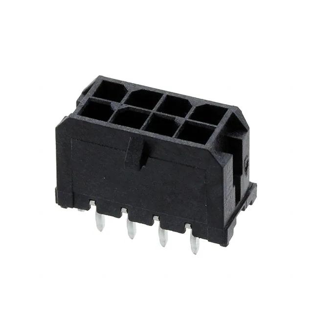 This is manufactured by Molex. The manufacturer part number is 0430450824. It has nice contact finishing of tin. Additionally, the product is designed with board to cable/wire Style. It has possible tin contact post finishing. It is assigned with possible HTSUS value of 8536.69.4040. The product is rohs3 compliant. The product has -40°c ~ 105°c operating temperature range. The product carries possible position value of 8. 0.390" (9.91mm) of insulation height. Moreover, the product has a nominal 600v voltage rating. In addition, it is reach unaffected. Furthermore, a bespoke product features shrouded - 4 wall. The product is widely employed in automotive, general purpose, industrial, medical, telecommunications. It comes in 2 of rows. It carries ul94 v-0 of material flammability rating. In addition, black is the insulation color of the product. It has a typical square shape. It has a robust liquid crystal polymer (lcp), glass filled insulation material. It is shipped in tray. It carries 0.118" (3.00mm) of row spacing. header Connector type offer robust functionality. However, all is the Number of Positions Loaded. Its typical moisture sensitivity level is 1 (unlimited). However, 60.0µin (1.52µm) is the "Contact Finish Thickness - Mating" of the product. Furthermore, locking ramp is the Fastening Type of the product. The product features kinked pin, solder termination style. It has a long 17 weeks standard lead time. Additionally, the product's output is 8a 0.125" (3.18mm) is the given possible contact length (post) values. It has 0.118" (3.00mm) of pitch-mating value. The splendid features of the product include board guide, board lock. The product is available in through hole configuration. The product micro-fit 3.0 43045, is a highly preferred choice for users. It has typical contact type of male pin. The product is made from sturdy brass materials. Moreover, it corresponds to 043045, a base product number of the product. The product is designated with the ear99 code number