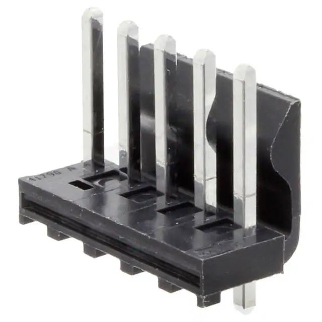 This is manufactured by Molex. The manufacturer part number is 1718130005. It has nice contact finishing of tin. Additionally, the product is designed with board to board or cable Style. It has possible tin contact post finishing. It is assigned with possible HTSUS value of 8536.69.4040. The product is rohs3 compliant. Additionally, it features 60.0µin (1.52µm) of post thickness. The product carries possible position value of 5. The product has a 0.671" (17.05mm) of overall contact lentgh. 0.446" (11.33mm) of insulation height. In addition, it is reach unaffected. Furthermore, a bespoke product features shrouded - 1 wall. The product is widely employed in automotive, general purpose, industrial, medical, telecommunications. It comes in 1 of rows. It carries ul94 v-2 of material flammability rating. In addition, black is the insulation color of the product. It has a typical square shape. It has a robust polyamide (pa), nylon insulation material. It is shipped in bulk. header Connector type offer robust functionality. It is 0.448" (11.38mm) contact mated. However, all is the Number of Positions Loaded. Its typical moisture sensitivity level is 1 (unlimited). However, 60.0µin (1.52µm) is the "Contact Finish Thickness - Mating" of the product. Furthermore, friction lock is the Fastening Type of the product. The product features solder termination style. It has a long 32 weeks standard lead time. 0.093" (2.35mm) is the given possible contact length (post) values. It has 0.156" (3.96mm) of pitch-mating value. The product is available in through hole configuration. The product kk396, 171813, is a highly preferred choice for users. It has typical contact type of male pin. The product is made from sturdy brass materials. Moreover, it corresponds to 171813, a base product number of the product. The product is designated with the ear99 code number
