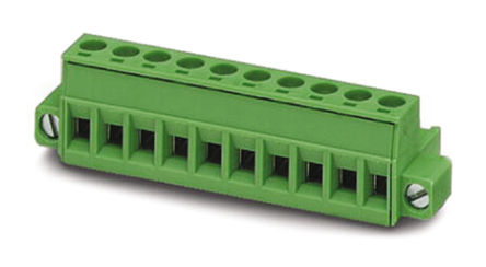 This is manufactured by Phoenix Contact. The manufacturer part number is 1778153. The product is made from highly stable and reliable polyamide, tin. The product has a current rating of 12a. Moreover, the product has a nominal 630 v voltage rating. In addition, female is the available "Gender" of the product. Moreover, the product is 5.08mm The product mstb 2.5/19-stf-5.08, is a highly preferred choice for users. The product contains 19 contacts. It comes in plug configuration. It is assigned with possible HTSUS value of 8536.69.8000. The product is rohs compliant. Moreover, it has screw - rising cage clamp terminal style. The product also features robust polyamide (pa), nylon housing material. It is available in screw size of m3. The typical length of the wire strip is 7mm. It comes in plug, female sockets configuration. The product carries possible position value of 19. A 0.2-2.5mm² of wire gauge. It also a 180° plug wire entry. 0.591" (15.00mm) of insulation height. It carries ul94 v-0 of material flammability rating. It is shipped in bulk. Its typical moisture sensitivity level is 1 (unlimited). An IEC current of 12a. While 12-30 awg is its range or wire gauge. While 300 v is the typical voltage of the product. It carries torque - screw values of 0.5-0.6 nm (4.4-5.3 lb-in). It has a long 5 weeks standard lead time. The mating finish of the contact is tin. The nominal voltage of the product is 630 v. The splendid features of the product include mating flange. The product is available in free hanging (in-line) configuration. It has a classic green colour. The product combicon mstb, is a highly preferred choice for users. It has 19 positions each level. The typical current includes 15 a. Moreover, the product is 0.200" (5.08mm) The product carries 1 levels. The product is designated with the ear99 code number