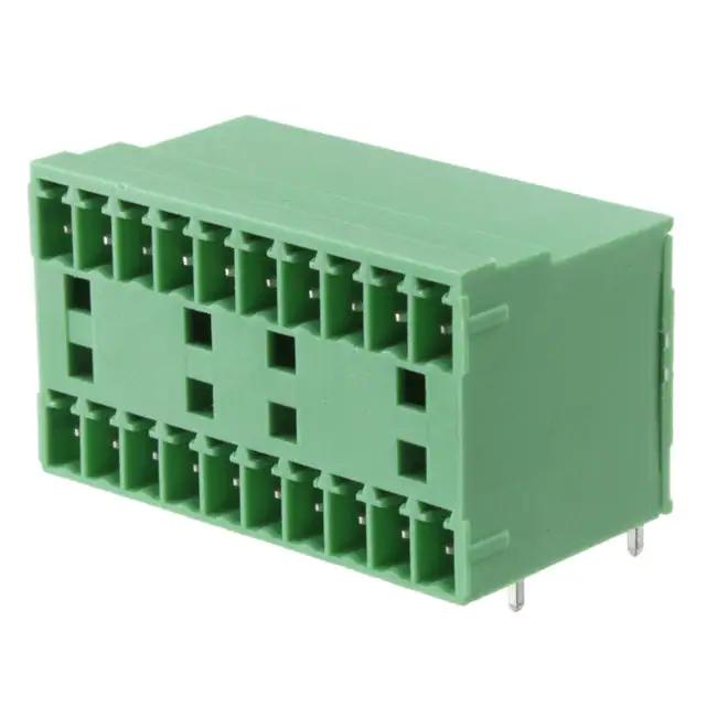 This is manufactured by Phoenix Contact. The manufacturer part number is 1843156. The product mini combicon mcd, is a highly preferred choice for users. The product has a current rating of 8a. The product is available in through hole configuration. Moreover, the product has a nominal 320 v voltage rating. In addition, male is the available "Gender" of the product. The product is made from highly stable and reliable polyamide. Its accurate length is 39.49mm. Furthermore, the product is 21.9mm wide. The product comes in 22.7mm depth. It comes in 2 of rows. Moreover, the product is 3.81mm The product contains 10 contacts. It comes in pcb header configuration. It is assigned with possible HTSUS value of 8536.69.4040. The product is rohs compliant. Moreover, it has solder terminal style. The product also features robust polyamide (pa), nylon housing material. It comes in header, male pins, shrouded (4 side) configuration. The product carries possible position value of 20. The typical tail length of the product is [Contact Tail Lenght]. 0.894" (22.71mm) of insulation height. It carries ul94 v-0 of material flammability rating. It is shipped in bulk. Its typical moisture sensitivity level is 1 (unlimited). An IEC current of 8a. While 300 v is the typical voltage of the product. It has a long 8 weeks standard lead time. The mating finish of the contact is tin. The nominal voltage of the product is 320 v. It has a classic green colour. The product combicon mcd, is a highly preferred choice for users. It has 10 positions each level. The product has a 90°, right angle of a header orientation. The typical current includes 8 a. Moreover, the product is 0.150" (3.81mm) The product carries 2 levels. The product is designated with the ear99 code number