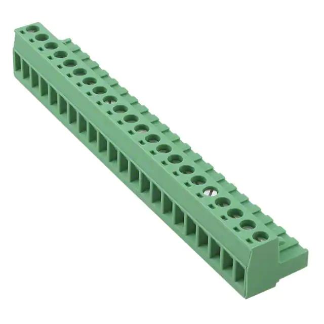 This is manufactured by Phoenix Contact. The manufacturer part number is 1757213. The product is made from highly stable and reliable polyamide, tin. The product has a current rating of 12a. Moreover, the product has a nominal 630 v voltage rating. In addition, female is the available "Gender" of the product. Moreover, the product is 5.08mm The product mstb 2.5/22-st-5.08, is a highly preferred choice for users. The product contains 22 contacts. It comes in plug configuration. It is assigned with possible HTSUS value of 8536.69.4040. The product is rohs compliant. Moreover, it has screw - rising cage clamp terminal style. The product also features robust polyamide (pa), nylon housing material. It is available in screw size of m3. The typical length of the wire strip is 7mm. It comes in plug, female sockets configuration. The product carries possible position value of 22. A 0.2-2.5mm² of wire gauge. It also a 180° plug wire entry. 0.591" (15.00mm) of insulation height. It carries ul94 v-0 of material flammability rating. It is shipped in bulk. Its typical moisture sensitivity level is 1 (unlimited). An IEC current of 12a. While 12-30 awg is its range or wire gauge. While 300 v is the typical voltage of the product. It carries torque - screw values of 0.5-0.6 nm (4.4-5.3 lb-in). It has a long 11 weeks standard lead time. The mating finish of the contact is tin. The nominal voltage of the product is 630 v. The splendid features of the product include retention latches (non-wire side). The product is available in free hanging (in-line) configuration. It has a classic green colour. The product combicon mstb, is a highly preferred choice for users. It has 22 positions each level. The typical current includes 15 a. Moreover, the product is 0.200" (5.08mm) The product carries 1 levels. The product is designated with the ear99 code number