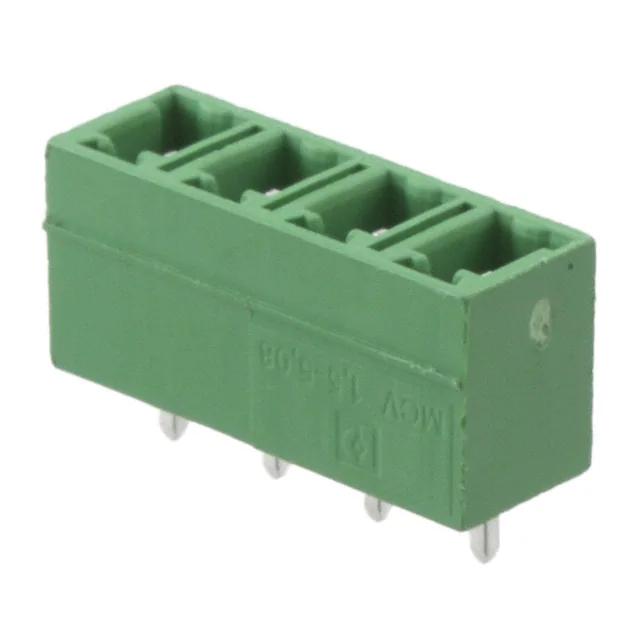 This is manufactured by Phoenix Contact. The manufacturer part number is 1836312. It is assigned with possible HTSUS value of 8536.69.4040. The product is rohs compliant. Moreover, it has solder terminal style. The product also features robust polybutylene terephthalate (pbt) housing material. It comes in header, male pins, shrouded (4 side) configuration. The product carries possible position value of 4. The typical tail length of the product is [Contact Tail Lenght]. 0.362" (9.20mm) of insulation height. It carries ul94 v-0 of material flammability rating. It is shipped in bulk. Its typical moisture sensitivity level is 1 (unlimited). An IEC current of 8a. While 300 v is the typical voltage of the product. It has a long 4 weeks standard lead time. The mating finish of the contact is tin. The nominal voltage of the product is 400 v. The product is available in through hole configuration. It has a classic green colour. The product combicon mcv, is a highly preferred choice for users. It has 4 positions each level. The product has a vertical of a header orientation. The typical current includes 8 a. Moreover, the product is 0.200" (5.08mm) The product carries 1 levels. The product is designated with the ear99 code number
