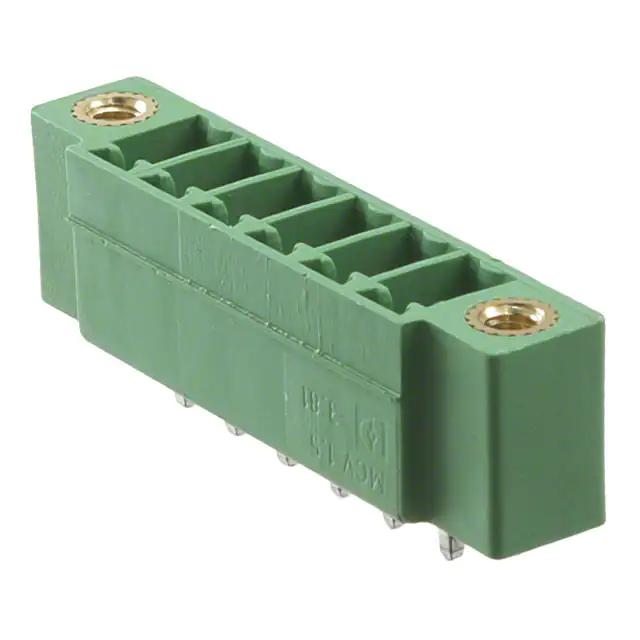 This is manufactured by Phoenix Contact. The manufacturer part number is 1879324. The product has a current rating of 8a. Moreover, the product has a nominal 250 v voltage rating. The product emcv 1.5/ 6-gf-3.81, is a highly preferred choice for users. Moreover, the product is 3.81mm The product contains 6 contacts. It comes in wire to board configuration. It is assigned with possible HTSUS value of 8536.69.4040. The product is rohs compliant. Moreover, it has press-fit terminal style. The product also features robust polybutylene terephthalate (pbt) housing material. It comes in header, male pins, shrouded (4 side) configuration. The product carries possible position value of 6. The typical tail length of the product is [Contact Tail Lenght]. 0.362" (9.20mm) of insulation height. It carries ul94 v-0 of material flammability rating. It is shipped in bulk. Its typical moisture sensitivity level is 1 (unlimited). An IEC current of 8a. While 300 v is the typical voltage of the product. The mating finish of the contact is tin. The nominal voltage of the product is 250 v. The splendid features of the product include mating and mounting flange. The product is available in through hole configuration. It has a classic green colour. The product combicon emcv, is a highly preferred choice for users. It has 6 positions each level. The product has a vertical of a header orientation. The typical current includes 8 a. Moreover, the product is 0.150" (3.81mm) The product carries 1 levels. The product is designated with the ear99 code number