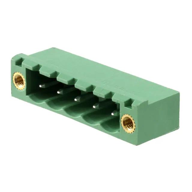 This is manufactured by Phoenix Contact. The manufacturer part number is 1776728. The product has a current rating of 12.0a. The product mstb 2.5/ 5-gf, is a highly preferred choice for users. Moreover, the product is 5.0mm The product contains 5 contacts. The product is made from sturdy tin materials. It is assigned with possible HTSUS value of 8536.69.4040. The product is rohs3 compliant. Moreover, it has solder terminal style. The product also features robust polybutylene terephthalate (pbt) housing material. It comes in header, male pins, shrouded (4 side) configuration. The product carries possible position value of 5. The typical tail length of the product is [Contact Tail Lenght]. 0.339" (8.61mm) of insulation height. In addition, it is reach unaffected. It carries ul94 v-0 of material flammability rating. It is shipped in bulk. Its typical moisture sensitivity level is 1 (unlimited). An IEC current of 12a. While 300 v is the typical voltage of the product. It has a long 4 weeks standard lead time. The mating finish of the contact is tin. The nominal voltage of the product is 400 v. The splendid features of the product include mating and mounting flange. The product is available in through hole configuration. It has a classic green colour. The product combicon mstb, is a highly preferred choice for users. It has 5 positions each level. The product has a 90°, right angle of a header orientation. The typical current includes 15 a. Moreover, the product is 0.197" (5.00mm) The product carries 1 levels. The product is designated with the ear99 code number