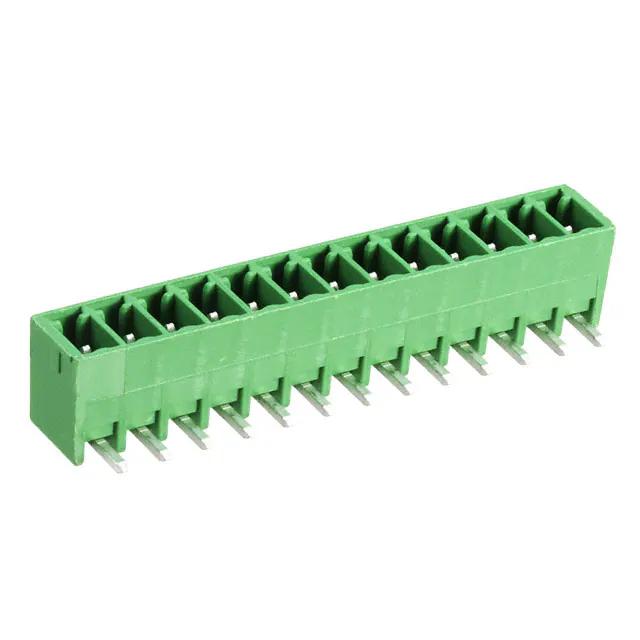 This is manufactured by Phoenix Contact. The manufacturer part number is 1844320. The product has a current rating of 8.0a. The product mc 1.5/13-g-3.5, is a highly preferred choice for users. Moreover, the product is 3.5mm The product contains 13 contacts. The product is made from sturdy tin materials. It is assigned with possible HTSUS value of 8536.69.4040. The product is rohs compliant. Moreover, it has solder terminal style. The product also features robust polybutylene terephthalate (pbt) housing material. It comes in header, male pins, shrouded (4 side) configuration. The product carries possible position value of 13. The typical tail length of the product is [Contact Tail Lenght]. 0.285" (7.25mm) of insulation height. It carries ul94 v-0 of material flammability rating. It is shipped in bulk. Its typical moisture sensitivity level is 1 (unlimited). An IEC current of 12a. While 300 v is the typical voltage of the product. It has a long 5 weeks standard lead time. The mating finish of the contact is tin. The nominal voltage of the product is 250 v. The product is available in through hole configuration. It has a classic green colour. The product combicon mc, is a highly preferred choice for users. It has 13 positions each level. The product has a 90°, right angle of a header orientation. The typical current includes 8 a. Moreover, the product is 0.138" (3.50mm) The product carries 1 levels. The product is designated with the ear99 code number
