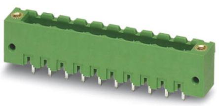 This is manufactured by Phoenix Contact. The manufacturer part number is 1777031. The product has a current rating of 12a. Moreover, the product has a nominal 320 v voltage rating. The product combicon mstbv, is a highly preferred choice for users. It comes in 1 of rows. Moreover, the product is 5mm The product contains 17 contacts. It comes in base strip configuration. The product is made from sturdy tin plated materials. It is assigned with possible HTSUS value of 8536.69.4040. The product is rohs compliant. Moreover, it has solder terminal style. The product also features robust polybutylene terephthalate (pbt) housing material. It comes in header, male pins, shrouded (4 side) configuration. The product carries possible position value of 17. The typical tail length of the product is [Contact Tail Lenght]. 0.472" (12.00mm) of insulation height. It carries ul94 v-0 of material flammability rating. It is shipped in bulk. Its typical moisture sensitivity level is 1 (unlimited). An IEC current of 12a. While 300 v is the typical voltage of the product. It has a long 4 weeks standard lead time. The mating finish of the contact is tin. The nominal voltage of the product is 400 v. The splendid features of the product include mating and mounting flange. The product is available in through hole configuration. It has a classic green colour. It has 17 positions each level. The product has a vertical of a header orientation. The typical current includes 12 a. Moreover, the product is 0.197" (5.00mm) The product carries 1 levels. The product is designated with the ear99 code number