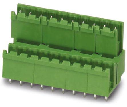 This is manufactured by Phoenix Contact. The manufacturer part number is 1845552. The product combicon mdstbv, is a highly preferred choice for users. The product has a current rating of 10a. The product is available in through hole configuration. Moreover, the product has a nominal 400 v voltage rating. In addition, male is the available "Gender" of the product. The product is made from highly stable and reliable pbt. Its accurate length is 48.26mm. Furthermore, the product is 23.7mm wide. The product comes in 22.1mm depth. It comes in 2 of rows. Moreover, the product is 5.08mm The product contains 9 contacts. It comes in pcb header configuration. It is assigned with possible HTSUS value of 8536.69.4040. The product is rohs compliant. Moreover, it has solder terminal style. The product also features robust polybutylene terephthalate (pbt) housing material. It comes in header, male pins, shrouded (2 side) configuration. The product carries possible position value of 18. The typical tail length of the product is [Contact Tail Lenght]. 0.870" (22.10mm) of insulation height. It carries ul94 v-0 of material flammability rating. It is shipped in bulk. Its typical moisture sensitivity level is 1 (unlimited). An IEC current of 10a. While 300 v is the typical voltage of the product. It has a long 4 weeks standard lead time. The mating finish of the contact is tin. The nominal voltage of the product is 400 v. It has a classic green colour. It has 9 positions each level. The product has a vertical of a header orientation. The typical current includes 12 a. Moreover, the product is 0.200" (5.08mm) The product carries 2 levels. The product is designated with the ear99 code number
