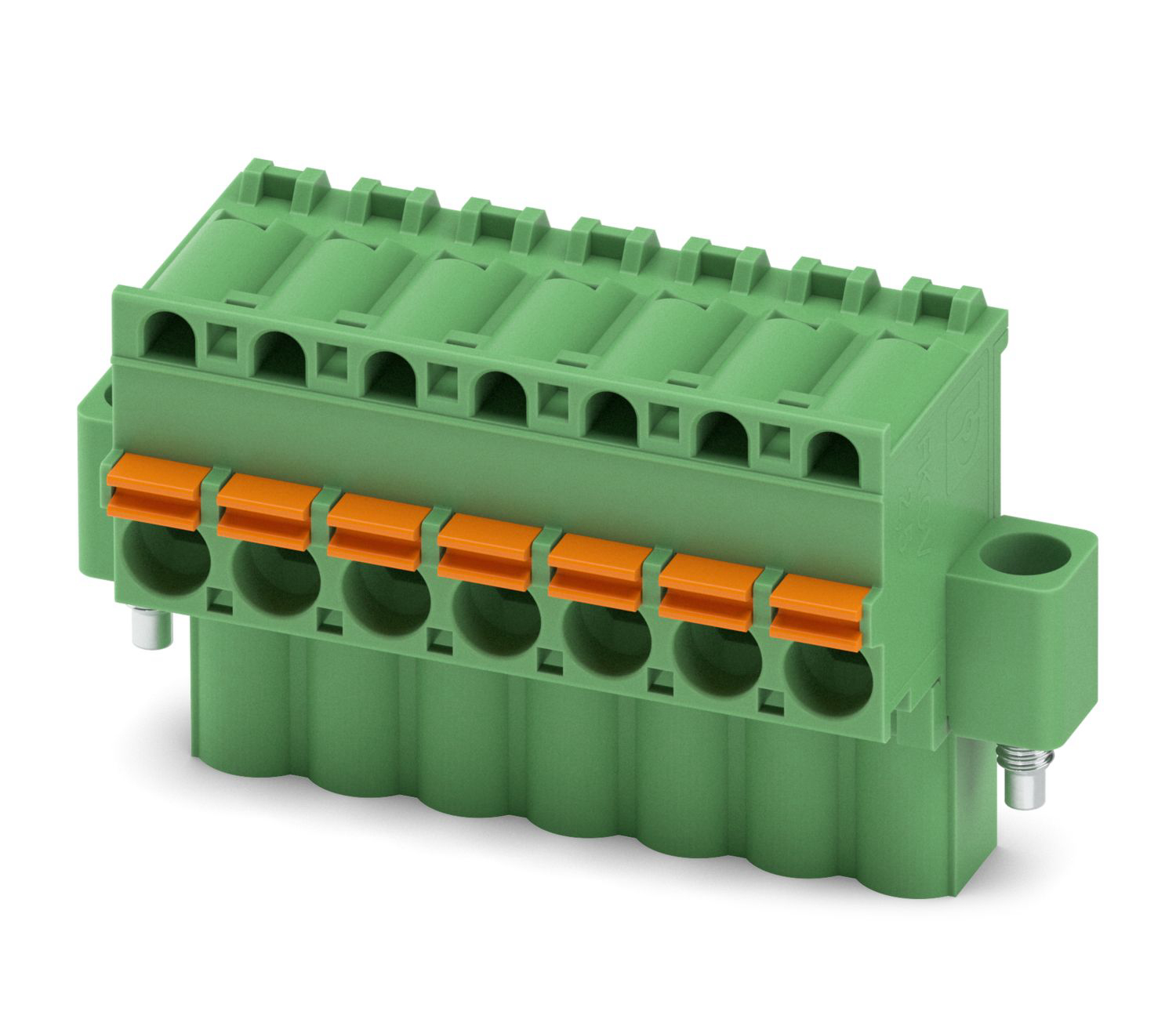 This is manufactured by Phoenix Contact. The manufacturer part number is 1910254. The product is made from highly stable and reliable polyamide, tin. The product has a current rating of 12a. Moreover, the product has a nominal 630 v voltage rating. In addition, female is the available "Gender" of the product. Moreover, the product is 5mm The product fkcvw 2.5/ 7-stf, is a highly preferred choice for users. The product contains 7 contacts. It comes in plug configuration. It is assigned with possible HTSUS value of 8536.69.8000. The product is rohs compliant. Moreover, it has screwless - leg spring, push-in spring terminal style. The product also features robust polyamide (pa), nylon housing material. The typical length of the wire strip is 10mm. It comes in plug, female sockets configuration. The product carries possible position value of 7. A 0.2-2.5mm² of wire gauge. It also a 270° plug wire entry. 0.661" (16.80mm) of insulation height. It carries ul94 v-0 of material flammability rating. It is shipped in bulk. Its typical moisture sensitivity level is 1 (unlimited). An IEC current of 12a. While 12-26 awg is its range or wire gauge. While 300 v is the typical voltage of the product. It has a long 11 weeks standard lead time. The mating finish of the contact is tin. The nominal voltage of the product is 630 v. The splendid features of the product include mating flange, retention latches (non-wire side). The product is available in free hanging (in-line) configuration. It has a classic green colour. The product combicon fkcvw, is a highly preferred choice for users. It has 7 positions each level. The typical current includes 10 a. Moreover, the product is 0.197" (5.00mm) The product carries 1 levels. The product is designated with the ear99 code number