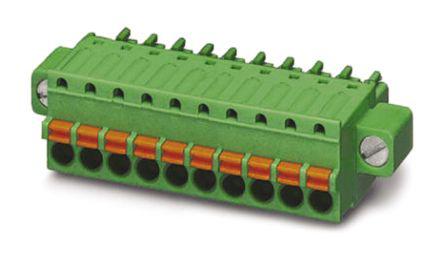This is manufactured by Phoenix Contact. The manufacturer part number is 1940130. The product is made from highly stable and reliable polyamide, tin. The product has a current rating of 8a. Moreover, the product has a nominal 320 v voltage rating. In addition, female is the available "Gender" of the product. Moreover, the product is 3.5mm The product fk-mcp 1.5/ 6-stf-3.5, is a highly preferred choice for users. The product contains 6 contacts. It comes in plug configuration. It is assigned with possible HTSUS value of 8536.69.8000. The product is rohs compliant. Moreover, it has screwless - push-in spring terminal style. The product also features robust polyamide (pa), nylon housing material. The typical length of the wire strip is 9mm. It comes in plug, female sockets configuration. The product carries possible position value of 6. A 0.14-1.5mm² of wire gauge. It also a 180° plug wire entry. 0.488" (12.40mm) of insulation height. It carries ul94 v-0 of material flammability rating. It is shipped in bulk. Its typical moisture sensitivity level is 1 (unlimited). An IEC current of 8a. While 16-28 awg is its range or wire gauge. While 300 v is the typical voltage of the product. It has a long 24 weeks standard lead time. The mating finish of the contact is tin. The nominal voltage of the product is 320 v. The splendid features of the product include mating flange. The product is available in free hanging (in-line) configuration. It has a classic green colour. The product combicon fk-mcp, is a highly preferred choice for users. It has 6 positions each level. The typical current includes 8 a. Moreover, the product is 0.138" (3.50mm) The product carries 1 levels. The product is designated with the ear99 code number