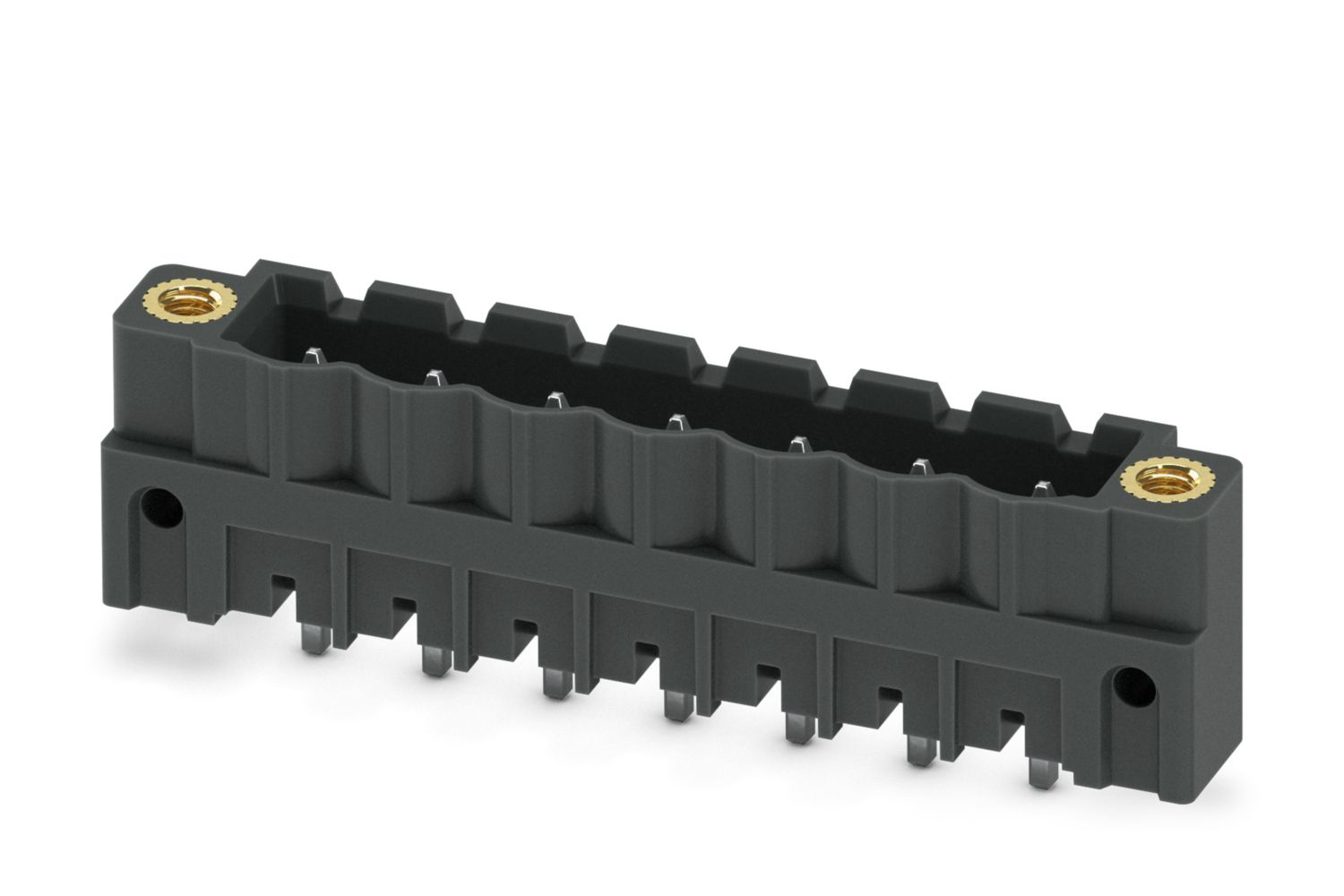 This is manufactured by Phoenix Contact. The manufacturer part number is 1955688. The product has a current rating of 12.0a. The product ccv 2.5/ 7-gf-5.08 p26thr, is a highly preferred choice for users. Moreover, the product is 5.08mm The product contains 7 contacts. The product is made from sturdy tin materials. It is assigned with possible HTSUS value of 8536.69.4040. The product is rohs compliant. Moreover, it has solder terminal style. The product also features robust liquid crystal polymer (lcp) housing material. It comes in header, male pins, shrouded (4 side) configuration. The product carries possible position value of 7. The typical tail length of the product is [Contact Tail Lenght]. 0.472" (12.00mm) of insulation height. It carries ul94 v-0 of material flammability rating. It is shipped in bulk. Its typical moisture sensitivity level is 1 (unlimited). An IEC current of 12a per position. While 300 v is the typical voltage of the product. It has a long 12 weeks standard lead time. The mating finish of the contact is tin. The nominal voltage of the product is 400 v. The splendid features of the product include mating flange. The product is available in through hole configuration. It has a classic black colour. The product combicon ccv, is a highly preferred choice for users. It has 7 positions each level. The product has a vertical of a header orientation. The typical current includes 10 a. Moreover, the product is 0.200" (5.08mm) The product carries 1 levels. The product is designated with the ear99 code number