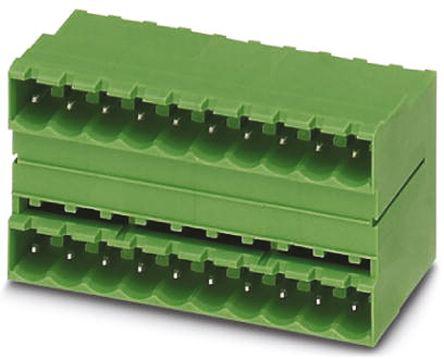 This is manufactured by Phoenix Contact. The manufacturer part number is 1762800. The product has a current rating of 10a. Moreover, the product has a nominal 320 v voltage rating. The product combicon mdstb, is a highly preferred choice for users. It comes in 2 of rows. Moreover, the product is 5mm The product contains 13 contacts. It comes in header configuration. The product is made from sturdy tin plated materials. It is assigned with possible HTSUS value of 8536.69.4040. The product is rohs compliant. Moreover, it has solder terminal style. The product also features robust polyamide (pa), nylon housing material. It comes in header, male pins, shrouded (4 side) configuration. The product carries possible position value of 26. The typical tail length of the product is [Contact Tail Lenght]. 1.122" (28.50mm) of insulation height. It carries ul94 v-0 of material flammability rating. It is shipped in bulk. Its typical moisture sensitivity level is 1 (unlimited). An IEC current of 10a. While 300 v is the typical voltage of the product. It has a long 8 weeks standard lead time. The mating finish of the contact is tin. The nominal voltage of the product is 630 v. The product is available in through hole configuration. It has a classic green colour. It has 13 positions each level. The product has a 90°, right angle of a header orientation. The typical current includes 15 a. Moreover, the product is 0.197" (5.00mm) The product carries 2 levels. The product is designated with the ear99 code number