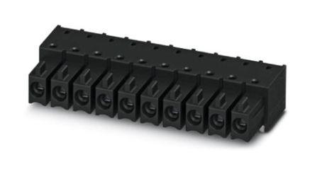 This is manufactured by Phoenix Contact. The manufacturer part number is 1830566. The product has a current rating of 8a. Moreover, the product has a nominal 320 v voltage rating. The product combicon imc, is a highly preferred choice for users. Moreover, the product is 3.5mm The product contains 2 contacts. It comes in base strip configuration. It is assigned with possible HTSUS value of 8536.69.4040. The product is rohs compliant. Moreover, it has solder terminal style. The product also features robust liquid crystal polymer (lcp) housing material. It comes in header, female sockets configuration. The product carries possible position value of 2. The typical tail length of the product is [Contact Tail Lenght]. 0.248" (6.30mm) of insulation height. It carries ul94 v-0 of material flammability rating. It is shipped in bulk. Its typical moisture sensitivity level is 1 (unlimited). An IEC current of 8a. While 300 v is the typical voltage of the product. It has a long 6 weeks standard lead time. The mating finish of the contact is tin. The nominal voltage of the product is 320 v. The splendid features of the product include locking ramp. The product is available in through hole configuration. It has a classic black colour. It has 2 positions each level. The product has a 90°, right angle of a header orientation. The typical current includes 8 a. Moreover, the product is 0.138" (3.50mm) The product carries 1 levels. The product is designated with the ear99 code number
