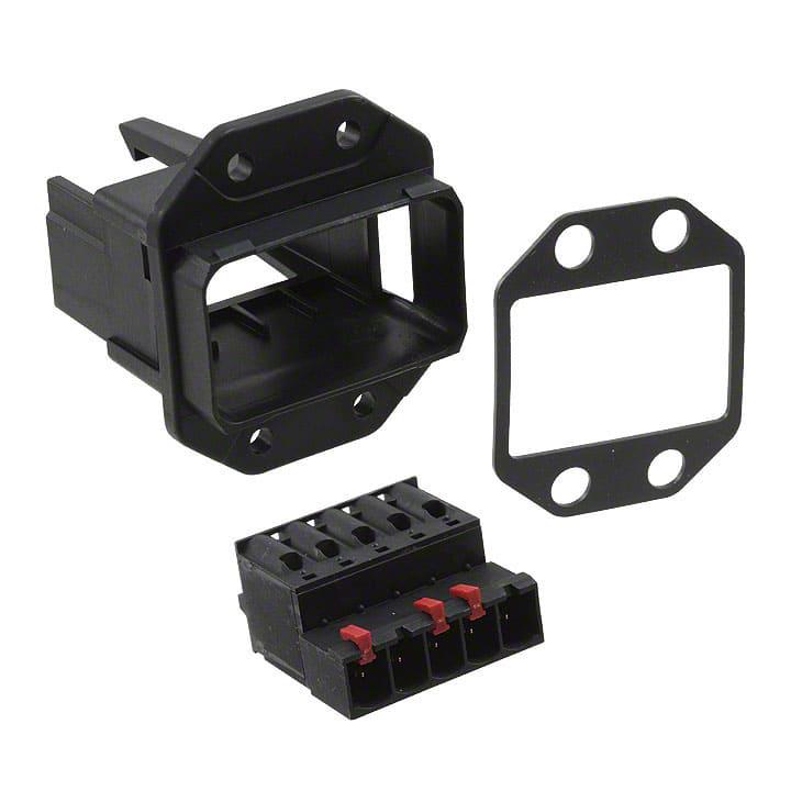 This is manufactured by Phoenix Contact. The manufacturer part number is 1608294. It is assigned with possible HTSUS value of 8536.69.4030. The product is rohs compliant. Moreover, it has screwless - spring cage, tension clamp terminal style. The product also features robust polyamide (pa), nylon housing material. The product has -40°c ~ 70°c operating temperature range. It comes in header, male pins, shrouded (4 side) configuration. The product carries possible position value of 5. A 0.75-2.5mm² of wire gauge. It also a 180° plug wire entry. 1.654" (42.00mm) of insulation height. It carries ul94 v-0 of material flammability rating. It is shipped in bulk. Its typical moisture sensitivity level is 1 (unlimited). An IEC current of 16a. While 13-18 awg is its range or wire gauge. The mating finish of the contact is gold. The nominal voltage of the product is 24 v. It is IP rated with ip65/ip67 - dust tight, water resistant, waterproof. The splendid features of the product include mounting flange. The product is available in panel mount configuration. It has a classic black colour. The product pluscon vs, is a highly preferred choice for users. It has 5 positions each level. Moreover, the product is 0.200" (5.08mm) The product carries 1 levels. The product is designated with the ear99 code number The product is made from sturdy copper alloy materials.
