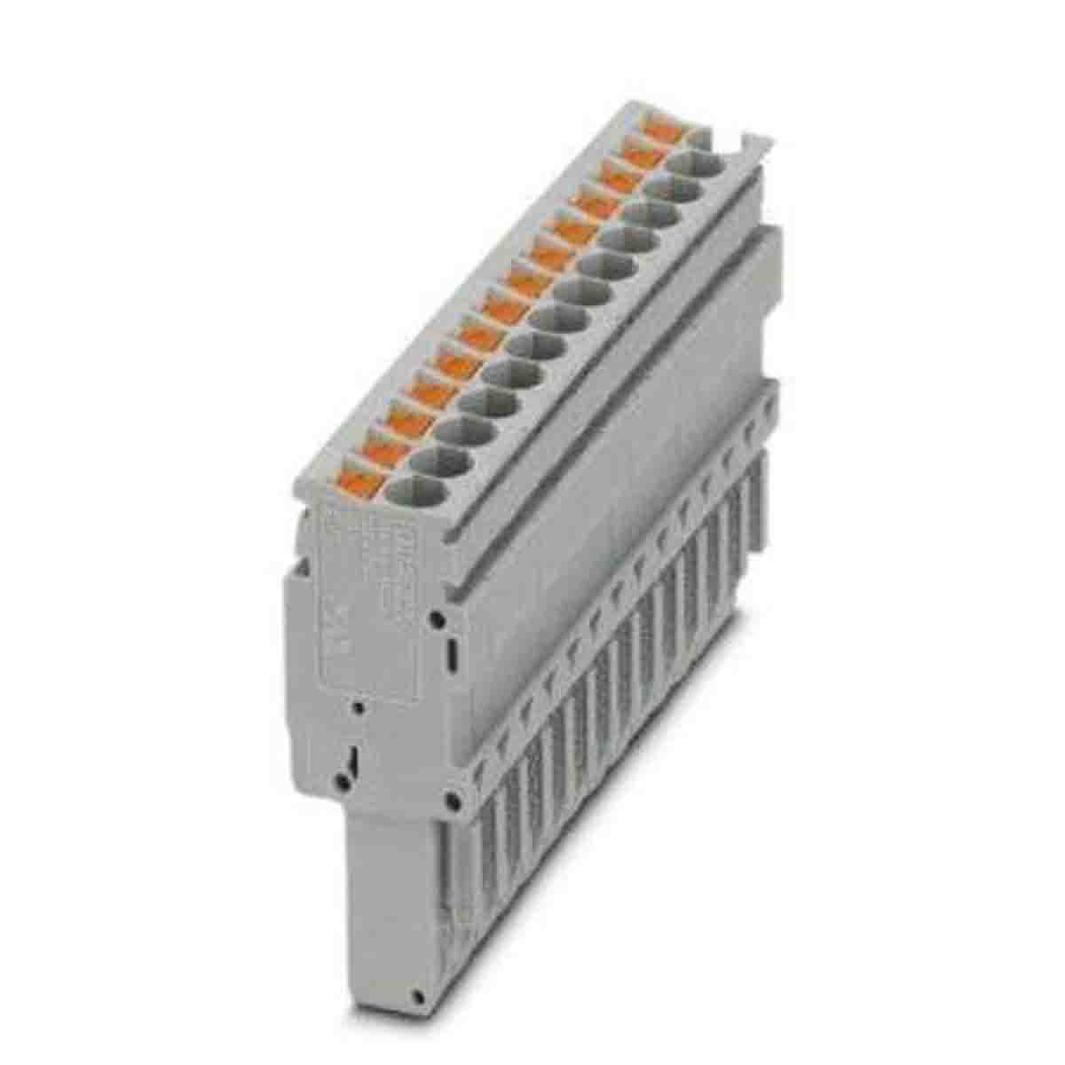 This is manufactured by Phoenix Contact. The manufacturer part number is 3209992. The product combi pluggable solutions, is a highly preferred choice for users. The product has a current rating of 24a. It is a type of modular connector accessory. The product is available in din rail configuration. It is assigned with possible HTSUS value of 8536.69.8000. The product is rohs compliant. Moreover, it has screwless - push-in spring terminal style. The product also features robust polyamide (pa), nylon housing material. The typical length of the wire strip is 10mm. It comes in plug, female sockets configuration. The product carries possible position value of 14. A 0.14-4mm² of wire gauge. It also a 180° plug wire entry. 1.535" (39.00mm) of insulation height. It carries ul94 v-0 of material flammability rating. It is shipped in bulk. Its typical moisture sensitivity level is 1 (unlimited). An IEC current of 24a. While 12-26 awg is its range or wire gauge. While 300 v is the typical voltage of the product. It has a long 6 weeks standard lead time. The nominal voltage of the product is 500 v. The product is available in free hanging (in-line) configuration. It has a classic gray colour. The product clipline combi pp-h, is a highly preferred choice for users. It has 14 positions each level. The typical current includes 20 a. The product carries 1 levels. The product is designated with the ear99 code number