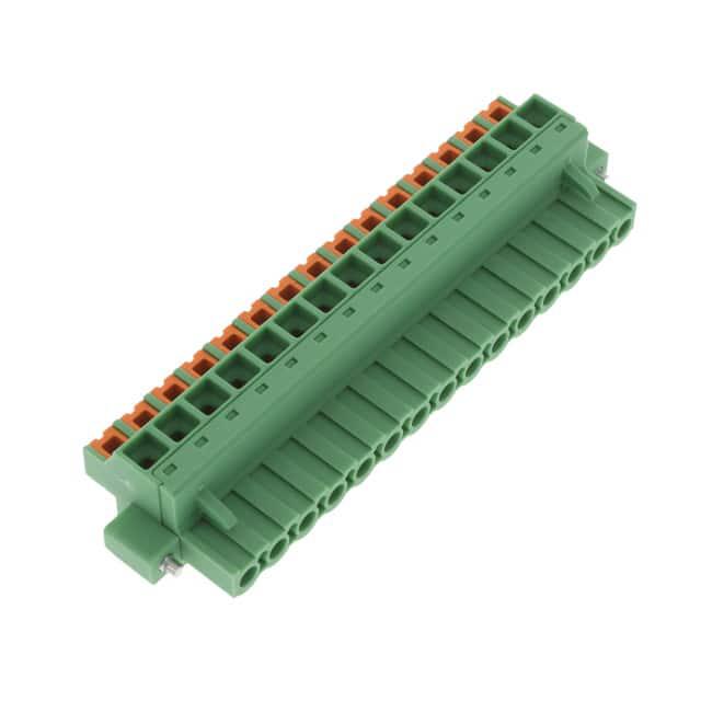 This is manufactured by Phoenix Contact. The manufacturer part number is 1861593. It is assigned with possible HTSUS value of 8536.69.8000. The product is rohs3 compliant. Moreover, it has screwless - leg spring, push-in spring terminal style. The product also features robust polyamide (pa), nylon housing material. The typical length of the wire strip is 10mm. It comes in plug, female sockets configuration. The product carries possible position value of 15. A 0.2-2.5mm² of wire gauge. It also a 90° plug wire entry. 0.933" (23.70mm) of insulation height. In addition, it is reach unaffected. It carries ul94 v-0 of material flammability rating. It is shipped in bulk. Its typical moisture sensitivity level is not applicable. An IEC current of 12a. While 12-26 awg is its range or wire gauge. While 300 v is the typical voltage of the product. It has a long 14 weeks standard lead time. The mating finish of the contact is tin. The nominal voltage of the product is 320 v. The splendid features of the product include lever actuated, mating flange, retention latches (non-wire side). The product is available in free hanging (in-line) configuration. It has a classic green colour. The product combicon fkcor, is a highly preferred choice for users. It has 15 positions each level. The typical current includes 12 a. Moreover, the product is 0.200" (5.08mm) The product carries 1 levels. The product is designated with the ear99 code number