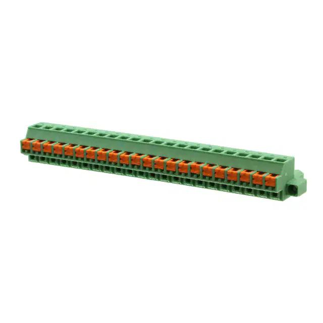 This is manufactured by Phoenix Contact. The manufacturer part number is 1860976. It is assigned with possible HTSUS value of 8536.69.8000. The product is rohs compliant. Moreover, it has screwless - leg spring, push-in spring terminal style. The product also features robust polyamide (pa), nylon housing material. The typical length of the wire strip is 10mm. It comes in plug, female sockets configuration. The product carries possible position value of 22. A 0.2-2.5mm² of wire gauge. It also a 270° plug wire entry. 0.933" (23.70mm) of insulation height. It carries ul94 v-0 of material flammability rating. It is shipped in bulk. Its typical moisture sensitivity level is not applicable. An IEC current of 12a. While 12-26 awg is its range or wire gauge. While 300 v is the typical voltage of the product. It has a long 11 weeks standard lead time. The mating finish of the contact is tin. The nominal voltage of the product is 320 v. The splendid features of the product include lever actuated, mating flange, retention latches (non-wire side). The product is available in free hanging (in-line) configuration. It has a classic green colour. The product combicon fkcow, is a highly preferred choice for users. It has 21 positions each level. The typical current includes 12 a. Moreover, the product is 0.200" (5.08mm) The product carries 1 levels. The product is designated with the ear99 code number