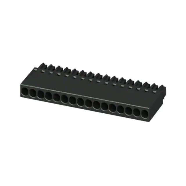 This is manufactured by Phoenix Contact. The manufacturer part number is 1012282. It is assigned with possible HTSUS value of 8536.69.8000. The product is rohs3 compliant. Moreover, it has crimp terminal style. The product also features robust polyamide (pa), nylon housing material. The product has -40°c operating temperature range. The typical length of the wire strip is 4.1-4.5mm. It comes in plug housing for female sockets configuration. The product carries possible position value of 16. A 0.14 ~ 0.75mm² of wire gauge. It also a 180° plug wire entry. 0.156" (3.96mm) of insulation height. In addition, it is reach unaffected. It carries ul94 v-0 of material flammability rating. It is shipped in bulk. Its typical moisture sensitivity level is not applicable. An IEC current of 6a. While 18-26 awg is its range or wire gauge. While 150 v is the typical voltage of the product. It has a long 6 weeks standard lead time. The nominal voltage of the product is 160 v. The product is available in free hanging (in-line) configuration. It has a classic black colour. The product combicon mcc, is a highly preferred choice for users. It has 16 positions each level. The typical current includes 6 a. Moreover, the product is 0.100" (2.54mm) The product carries 1 levels. The product is designated with the ear99 code number