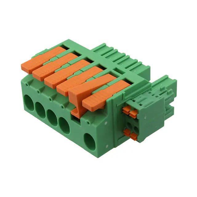 This is manufactured by Phoenix Contact. The manufacturer part number is 1717003. The product is available in plug-in configuration. In addition, female is the available "Gender" of the product. Moreover, the product is 7.62mm It comes in 1 of rows. The product lpch 6, is a highly preferred choice for users. The product contains 9 contacts. It is assigned with possible HTSUS value of 8536.69.8000. The product is rohs compliant. Moreover, it has screwless - push-in spring terminal style. The product also features robust polyamide (pa), nylon, glass filled housing material. The product has -40°c operating temperature range. The typical length of the wire strip is 18mm. It comes in plug, female sockets configuration. The product carries possible position value of 9. A 0.75-10mm² of wire gauge. It also a 180° plug wire entry. 1.083" (27.51mm) of insulation height. It carries ul94 v-0 of material flammability rating. It is shipped in bulk. Its typical moisture sensitivity level is not applicable. An IEC current of 41a. While 8-18 awg is its range or wire gauge. While 600 v is the typical voltage of the product. It has a long 16 weeks standard lead time. The mating finish of the contact is tin. The nominal voltage of the product is 1 kv. The splendid features of the product include lever actuated. The product is available in free hanging (in-line) configuration. It has a classic green colour. The product power combicon lpch, is a highly preferred choice for users. It has 9 (5 power + 4 signal) positions each level. The typical current includes 35 a. Moreover, the product is 0.300" (7.62mm) The product carries hybrid levels. The product is made from sturdy copper alloy materials. The product is designated with the ear99 code number