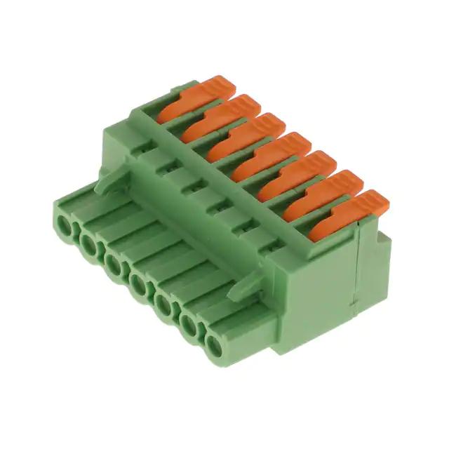 This is manufactured by Phoenix Contact. The manufacturer part number is 1110586. The product contains 7 contacts. In addition, female is the available "Gender" of the product. It comes in 1 of rows. Moreover, the product is 5.08mm It is assigned with possible HTSUS value of 8536.69.8000. The product is rohs3 compliant. Moreover, it has screwless - push-in spring terminal style. The product also features robust polyamide (pa), nylon housing material. The product has -40°c ~ 105°c operating temperature range. The typical length of the wire strip is 10mm. It comes in plug, female sockets configuration. The product carries possible position value of 7. A 0.2-2.5mm² of wire gauge. It also a 180° plug wire entry. 0.606" (15.39mm) of insulation height. It carries ul94 v-0 of material flammability rating. It is shipped in bulk. Its typical moisture sensitivity level is 1 (unlimited). An IEC current of 16a. While 12-26 awg is its range or wire gauge. While 300 v is the typical voltage of the product. It has a long 8 weeks standard lead time. The mating finish of the contact is tin. The nominal voltage of the product is 320 v. The splendid features of the product include lever actuated. The product is available in free hanging (in-line) configuration. It has a classic green colour. The product combicon lpc, is a highly preferred choice for users. It has 7 positions each level. The typical current includes 16 a. Moreover, the product is 0.200" (5.08mm) The product carries 1 levels. The product is made from sturdy copper alloy materials. The product is designated with the ear99 code number