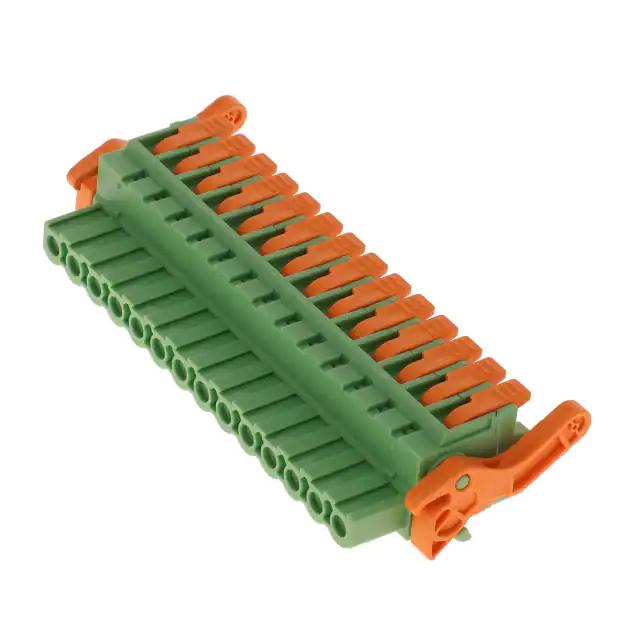 This is manufactured by Phoenix Contact. The manufacturer part number is 1110620. The product contains 14 contacts. In addition, female is the available "Gender" of the product. It comes in 1 of rows. Moreover, the product is 5.08mm It is assigned with possible HTSUS value of 8536.69.8000. The product is rohs3 compliant. Moreover, it has screwless - push-in spring terminal style. The product also features robust polyamide (pa), nylon housing material. The product has -40°c ~ 105°c operating temperature range. The typical length of the wire strip is 10mm. It comes in plug, female sockets configuration. The product carries possible position value of 14. A 0.2-2.5mm² of wire gauge. It also a 180° plug wire entry. 0.606" (15.39mm) of insulation height. It carries ul94 v-0 of material flammability rating. It is shipped in bulk. Its typical moisture sensitivity level is 1 (unlimited). An IEC current of 16a. While 12-26 awg is its range or wire gauge. While 300 v is the typical voltage of the product. It has a long 8 weeks standard lead time. The mating finish of the contact is tin. The nominal voltage of the product is 320 v. The splendid features of the product include ejector latches, lever actuated. The product is available in free hanging (in-line) configuration. It has a classic green colour. The product combicon lpc, is a highly preferred choice for users. It has 14 positions each level. The typical current includes 16 a. Moreover, the product is 0.200" (5.08mm) The product carries 1 levels. The product is made from sturdy copper alloy materials. The product is designated with the ear99 code number