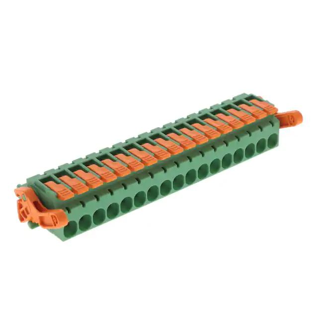 This is manufactured by Phoenix Contact. The manufacturer part number is 1110623. The product contains 17 contacts. In addition, female is the available "Gender" of the product. It comes in 1 of rows. Moreover, the product is 5.08mm It is assigned with possible HTSUS value of 8536.69.8000. The product is rohs3 compliant. Moreover, it has screwless - push-in spring terminal style. The product also features robust polyamide (pa), nylon housing material. The product has -40°c ~ 105°c operating temperature range. The typical length of the wire strip is 10mm. It comes in plug, female sockets configuration. The product carries possible position value of 17. A 0.2-2.5mm² of wire gauge. It also a 180° plug wire entry. 0.606" (15.39mm) of insulation height. It carries ul94 v-0 of material flammability rating. It is shipped in bulk. Its typical moisture sensitivity level is 1 (unlimited). An IEC current of 16a. While 12-26 awg is its range or wire gauge. While 300 v is the typical voltage of the product. It has a long 8 weeks standard lead time. The mating finish of the contact is tin. The nominal voltage of the product is 320 v. The splendid features of the product include ejector latches, lever actuated. The product is available in free hanging (in-line) configuration. It has a classic green colour. The product combicon lpc, is a highly preferred choice for users. It has 17 positions each level. The typical current includes 16 a. Moreover, the product is 0.200" (5.08mm) The product carries 1 levels. The product is made from sturdy copper alloy materials. The product is designated with the ear99 code number
