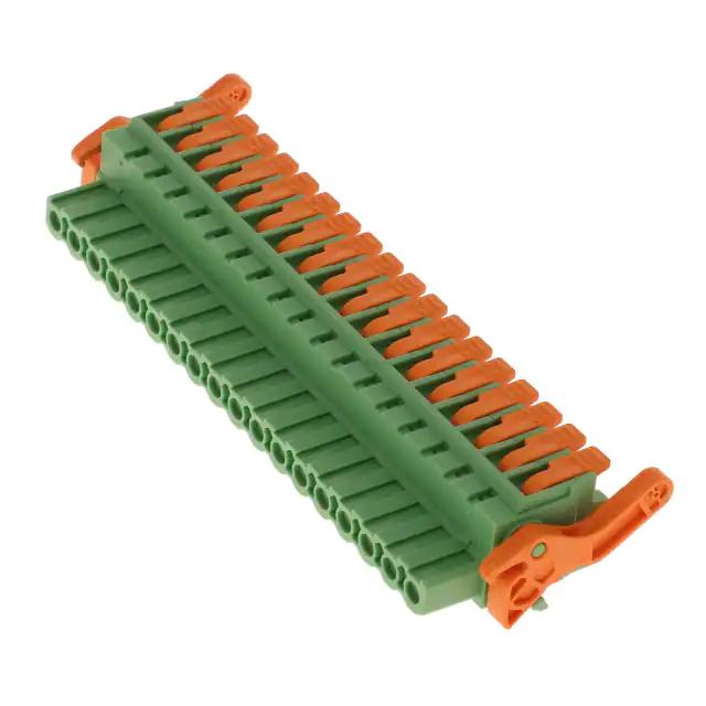 This is manufactured by Phoenix Contact. The manufacturer part number is 1110624. The product contains 18 contacts. In addition, female is the available "Gender" of the product. It comes in 1 of rows. Moreover, the product is 5.08mm It is assigned with possible HTSUS value of 8536.69.8000. The product is rohs3 compliant. Moreover, it has screwless - push-in spring terminal style. The product also features robust polyamide (pa), nylon housing material. The product has -40°c ~ 105°c operating temperature range. The typical length of the wire strip is 10mm. It comes in plug, female sockets configuration. The product carries possible position value of 18. A 0.2-2.5mm² of wire gauge. It also a 180° plug wire entry. 0.606" (15.39mm) of insulation height. It carries ul94 v-0 of material flammability rating. It is shipped in bulk. Its typical moisture sensitivity level is 1 (unlimited). An IEC current of 16a. While 12-26 awg is its range or wire gauge. While 300 v is the typical voltage of the product. It has a long 8 weeks standard lead time. The mating finish of the contact is tin. The nominal voltage of the product is 320 v. The splendid features of the product include ejector latches, lever actuated. The product is available in free hanging (in-line) configuration. It has a classic green colour. The product combicon lpc, is a highly preferred choice for users. It has 18 positions each level. The typical current includes 16 a. Moreover, the product is 0.200" (5.08mm) The product carries 1 levels. The product is made from sturdy copper alloy materials. The product is designated with the ear99 code number