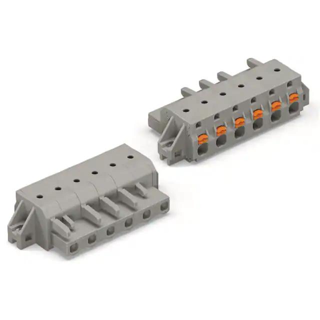 This is manufactured by WAGO Corporation. The manufacturer part number is 2231-206/031-000. It is assigned with possible HTSUS value of 8536.90.4000. The product is rohs3 compliant. Moreover, it has screwless - leg spring, push-in spring terminal style. The product also features robust polyamide (pa66), nylon 6/6 housing material. The product has -60°c ~ 100°c operating temperature range. The typical length of the wire strip is 10-11mm. It comes in plug, female sockets configuration. The product carries possible position value of 6. A 0.2-2.5mm² of wire gauge. It also a 180° plug wire entry. 0.591" (15.00mm) of insulation height. It carries ul94 v-0 of material flammability rating. It is shipped in box. Its typical moisture sensitivity level is not applicable. An IEC current of 16a. While 12-24 awg is its range or wire gauge. While 600 v is the typical voltage of the product. It has a long 12 weeks standard lead time. The mating finish of the contact is tin. The nominal voltage of the product is 1 kv. The splendid features of the product include mounting flange, retention latches (non-wire side). The product is available in free hanging (in-line) configuration. It has a classic gray colour. The product mcsmidi classic, is a highly preferred choice for users. It has 6 positions each level. The typical current includes 15 a. Moreover, the product is 0.295" (7.50mm) The product carries 1 levels. The product is made from sturdy copper alloy materials. The product is designated with the ear99 code number