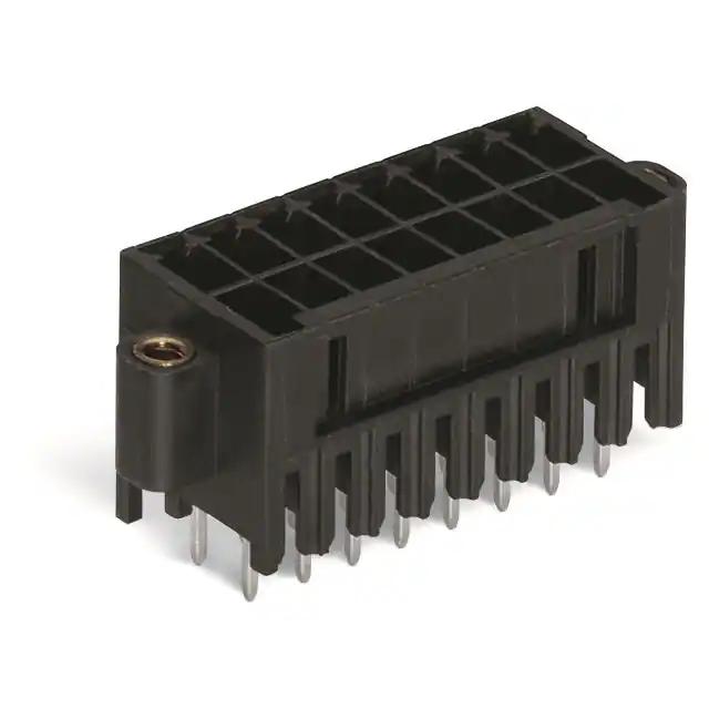 This is manufactured by WAGO Corporation. The manufacturer part number is 713-1468/107-000. It is assigned with possible HTSUS value of 8536.90.4000. The product is rohs3 compliant. Moreover, it has solder terminal style. The product also features robust polyphthalamide (ppa), glass filled housing material. The product has -60°c ~ 100°c operating temperature range. It comes in header, male pins, shrouded (4 side) configuration. The product carries possible position value of 16. The typical tail length of the product is [Contact Tail Lenght]. 0.531" (13.50mm) of insulation height. It carries ul94 v-0 of material flammability rating. It is shipped in box. Its typical moisture sensitivity level is 1 (unlimited). An IEC current of 10a. While 150 v is the typical voltage of the product. It has a long 12 weeks standard lead time. The mating finish of the contact is tin. The nominal voltage of the product is 250 v. The splendid features of the product include mating flange. The product is available in through hole configuration. It has a classic black colour. The product mcsmini hd, is a highly preferred choice for users. It has 8 positions each level. The product has a vertical of a header orientation. The typical current includes 10 a. Moreover, the product is 0.138" (3.50mm) The product carries 2 levels. The product is made from sturdy electrolytic copper materials. The product is designated with the ear99 code number