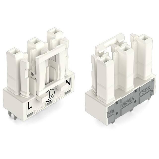 This is manufactured by WAGO Corporation. The manufacturer part number is 770-823. It is assigned with possible HTSUS value of 8536.90.4000. The product is rohs3 compliant. Moreover, it has solder terminal style. The product also features robust polyamide (pa66), nylon 6/6 housing material. The product has -35°c ~ 85°c operating temperature range. It comes in plug, male pins configuration. The product carries possible position value of 3. The typical tail length of the product is [Contact Tail Lenght]. It also a 90° plug wire entry. 1.024" (26.01mm) of insulation height. It carries ul94 v-0 of material flammability rating. It is shipped in box. Its typical moisture sensitivity level is 1 (unlimited). An IEC current of 25a. While 600 v is the typical voltage of the product. It has a long 12 weeks standard lead time. The nominal voltage of the product is 250 v. The splendid features of the product include locking feature. The product is available in panel mount configuration. It has a classic white colour. The product winsta® midi, is a highly preferred choice for users. It has 3 positions each level. The typical current includes 23 a. Moreover, the product is 0.394" (10.00mm) The product carries 1 levels. The product is designated with the ear99 code number