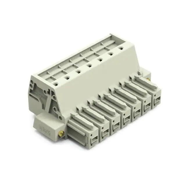 This is manufactured by WAGO Corporation. The manufacturer part number is 831-3107/107-000. It is assigned with possible HTSUS value of 8536.90.4000. The product is rohs3 compliant. Moreover, it has screwless - push-in spring terminal style. The product also features robust polyamide (pa66), nylon 6/6 housing material. The product has -60°c ~ 105°c operating temperature range. The typical length of the wire strip is 13-15mm. It comes in plug, female sockets configuration. The product carries possible position value of 7. A 0.5-10mm² of wire gauge. It also a 180° plug wire entry. 1.085" (27.55mm) of insulation height. It carries ul94 v-0 of material flammability rating. It is shipped in box. Its typical moisture sensitivity level is not applicable. An IEC current of 41a. While 8-20 awg is its range or wire gauge. While 600 v is the typical voltage of the product. It has a long 12 weeks standard lead time. The mating finish of the contact is tin. The nominal voltage of the product is 1 kv. The splendid features of the product include mating flange. The product is available in free hanging (in-line) configuration. It has a classic gray colour. The product mcsmaxi 6, is a highly preferred choice for users. It has 7 positions each level. The typical current includes 42 a. Moreover, the product is 0.300" (7.62mm) The product carries 1 levels. The product is made from sturdy electrolytic copper materials. The product is designated with the ear99 code number