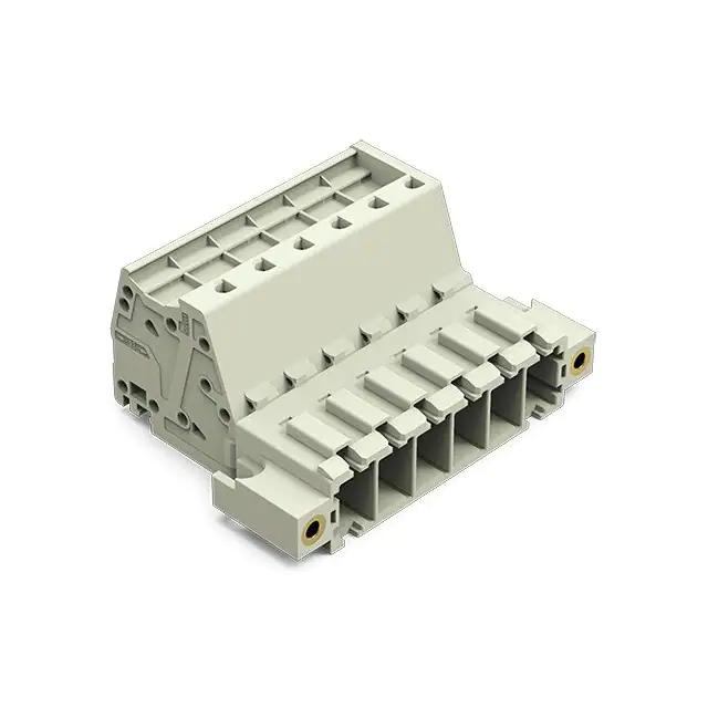 This is manufactured by WAGO Corporation. The manufacturer part number is 831-3206/109-000. It is assigned with possible HTSUS value of 8536.90.4000. The product is rohs3 compliant. Moreover, it has screwless - push-in spring terminal style. The product also features robust polyamide (pa66), nylon 6/6 housing material. The product has -60°c ~ 105°c operating temperature range. The typical length of the wire strip is 13-15mm. It comes in plug, male pins configuration. The product carries possible position value of 6. A 0.5-10mm² of wire gauge. It also a 180° plug wire entry. 1.085" (27.55mm) of insulation height. It carries ul94 v-0 of material flammability rating. It is shipped in box. Its typical moisture sensitivity level is not applicable. An IEC current of 41a. While 8-20 awg is its range or wire gauge. While 600 v is the typical voltage of the product. It has a long 12 weeks standard lead time. The mating finish of the contact is tin. The nominal voltage of the product is 1 kv. The splendid features of the product include mating flange. The product is available in free hanging (in-line) configuration. It has a classic gray colour. The product mcsmaxi 6, is a highly preferred choice for users. It has 6 positions each level. The typical current includes 42 a. Moreover, the product is 0.300" (7.62mm) The product carries 1 levels. The product is made from sturdy electrolytic copper materials. The product is designated with the ear99 code number