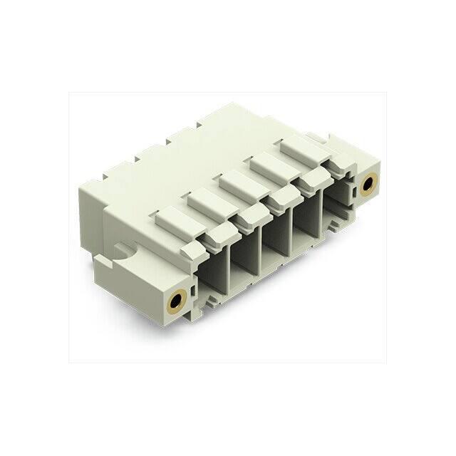 This is manufactured by WAGO Corporation. The manufacturer part number is 831-3625/108-000. It is assigned with possible HTSUS value of 8536.90.4000. The product is rohs3 compliant. Moreover, it has solder terminal style. The product also features robust polyamide (pa66), nylon 6/6 housing material. The product has -60°c ~ 105°c operating temperature range. It comes in header, male pins, shrouded (4 side) configuration. The product carries possible position value of 5. The typical tail length of the product is [Contact Tail Lenght]. 0.504" (12.80mm) of insulation height. It carries ul94 v-0 of material flammability rating. It is shipped in box. Its typical moisture sensitivity level is 1 (unlimited). An IEC current of 41a. While 600 v is the typical voltage of the product. It has a long 12 weeks standard lead time. The mating finish of the contact is tin. The nominal voltage of the product is 1 kv. The splendid features of the product include mating flange. The product is available in through hole configuration. It has a classic gray colour. The product mcsmaxi 6, is a highly preferred choice for users. It has 5 positions each level. The product has a 90°, right angle of a header orientation. The typical current includes 5 a. Moreover, the product is 0.300" (7.62mm) The product carries 1 levels. The product is made from sturdy electrolytic copper materials. The product is designated with the ear99 code number